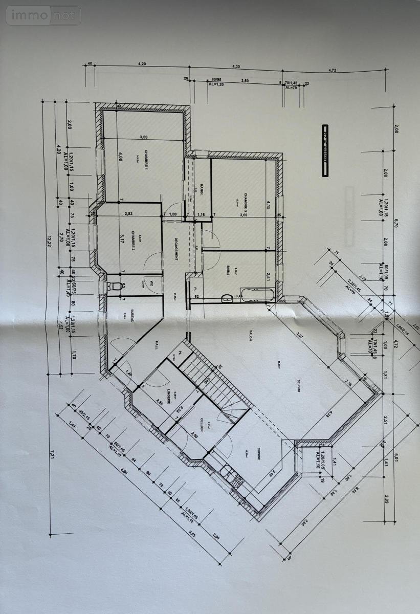 Elle se compose d'une entrée, d'une pièce à vivre, d'une cuisine, d'une buanderie, de deux bureaux, trois chambres dont une avec salle d'eau, d'une salle de bains, un WC. Un dégagement permet l'accès aux différentes pièces de l'habitation.