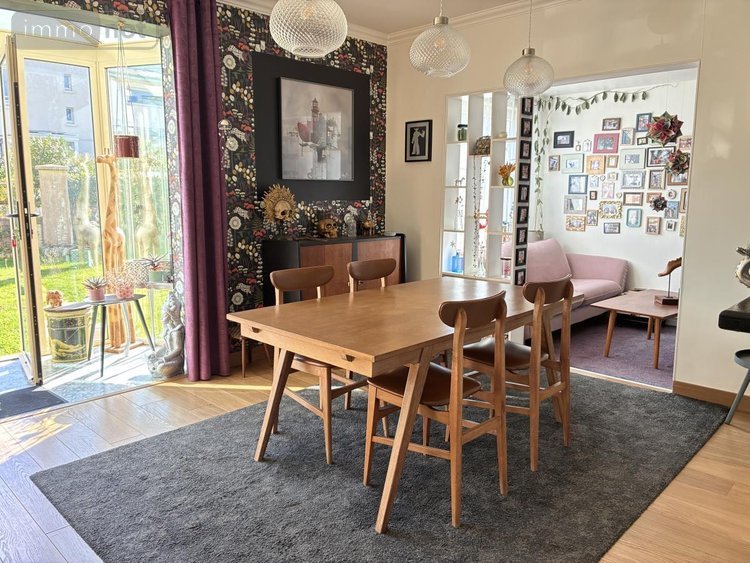 - Au rez-de-chaussée : un sas d'entrée, un salon, un séjour et une salle à manger, une cuisine, un cellier, WC.