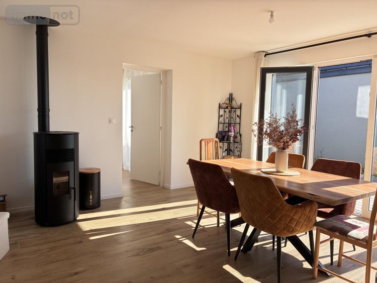 au rez-de-chaussée: une entrée, une lumineuse pièce à vivre avec poêle et s'ouvrant sur une terrasse exposée Sud, une cuisine aménagée et équipée, une suite parentale avec dressing et salle d'eau, un cellier, un wc.