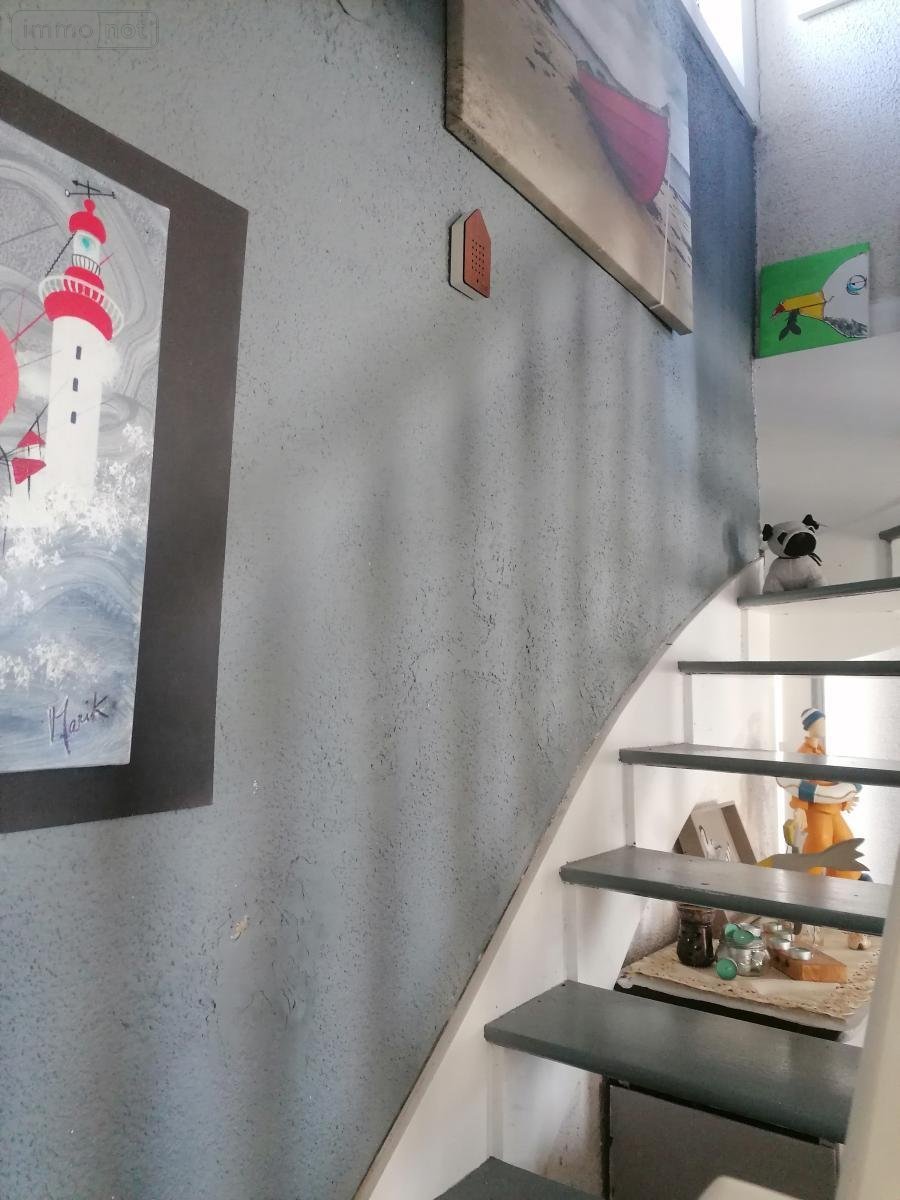 Maison d'habitation située au coeur de Plouescat composée en rdc d'une pièce de vie avec cuisine A/E ouverte sur le salon-séjour, un garage aménagé avec une salle de bain, WC et une baie vitrée donnant accès à un petit extérieur; A l'étage, un palier desservant 2 chambres, une salle d'eau avec WC; Au grenier, une pièce aménagée en chambre.