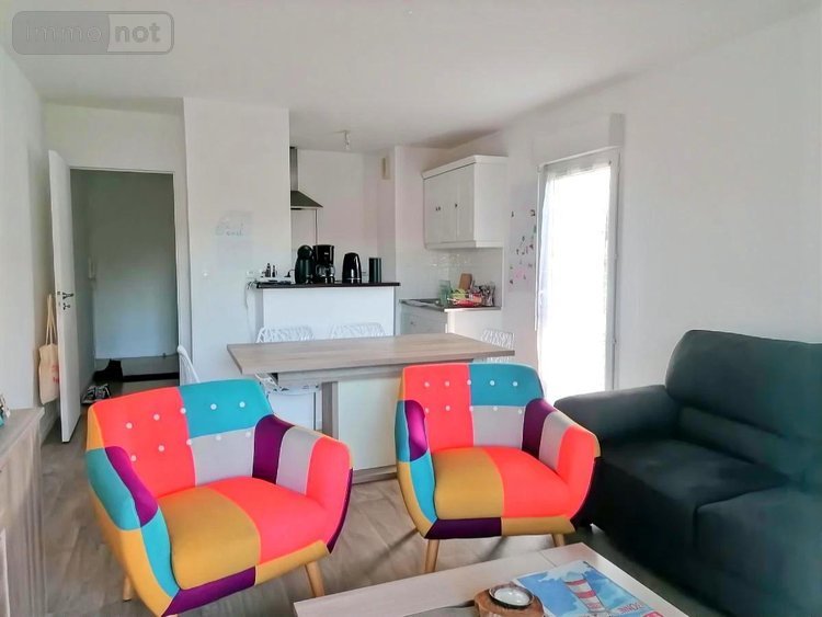 Appartement T2 situé dans une résidence sécurisée, en rez de chaussée composé d'une entrée avec placard, une pièce de vie avec cuisine ouverte, une salle d'eau avec WC, une chambre avec placard. Une terrasse privative, une cave privative et une place de parking.