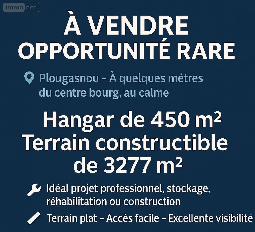 2200 - PLOUGASNOU - A SAISIR - A proximité du bourg et bénéficiant d'une excellente visibilité, ce bâtiment/hangar de 450m2 est adaptable à tous vos projets.
