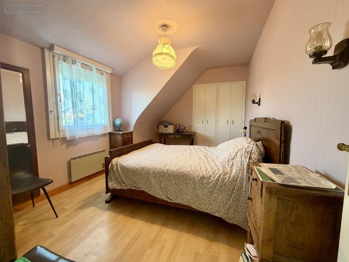A l'étage, un palier dessert deux chambres, un bureau pouvant être transformé en une chambre d'appoint, et une salle de bains avec wc.