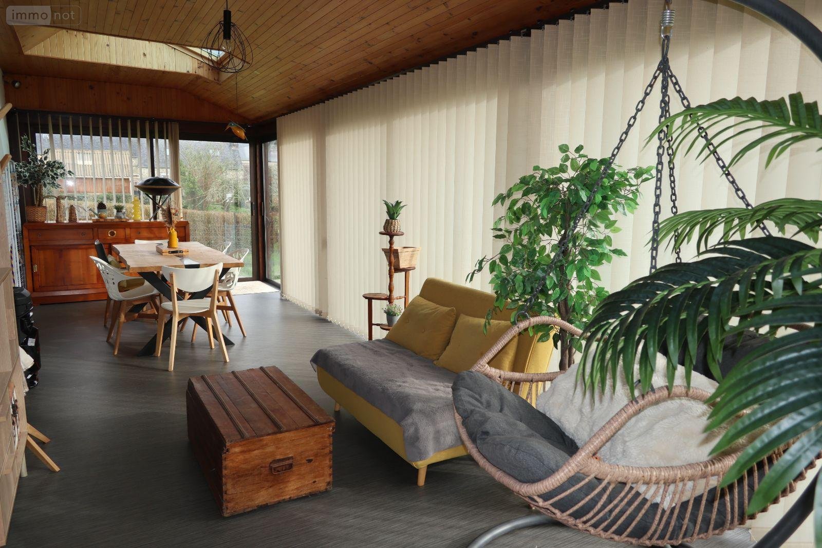 L'HOPITAL-CAMFROUT (29460)- A proximité des commerces, Maison sur un terrain d'une superficie d'envi. 1700m² comprenant: salon/séjour avec cuisine US aménagée donnant sur une véranda, salle d'eau, wc, cellier/ buanderie. A l'étage: 3 chambres, salle de bains avec wc. Petit hangar fermé. Jardin.