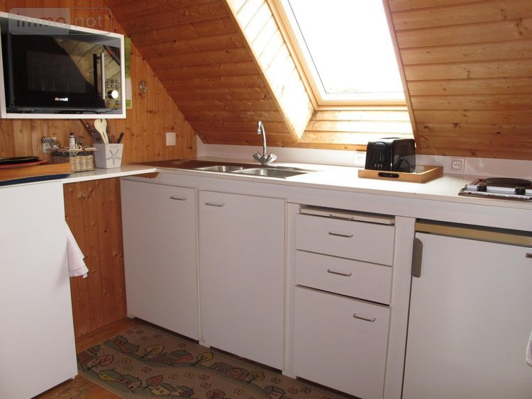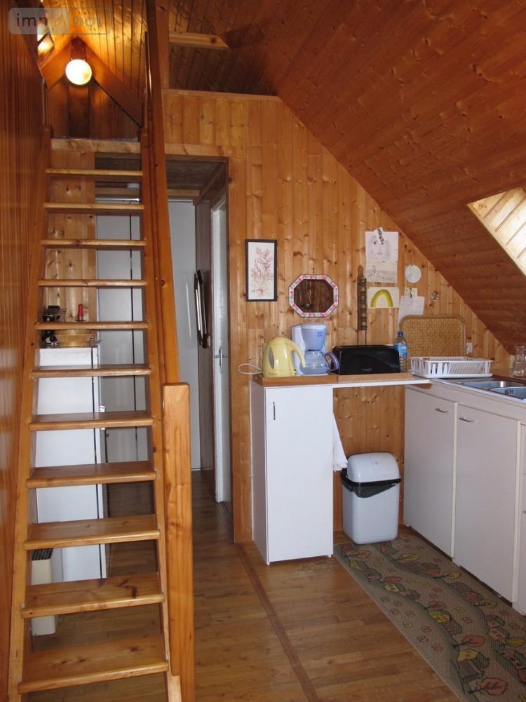 A vendre Immobilier - Finistère- CLEDER - situé en bord de mer, chalet en parfait état composé d'un coin repas avec kitchenette, d'une pièce de vie, de deux chambres et d'une mezzanine. Le tout sur un terrain clos de 195m².