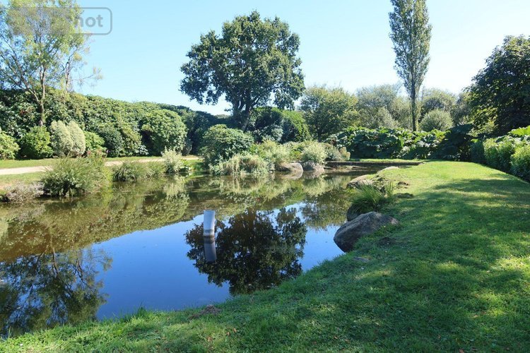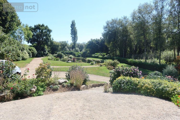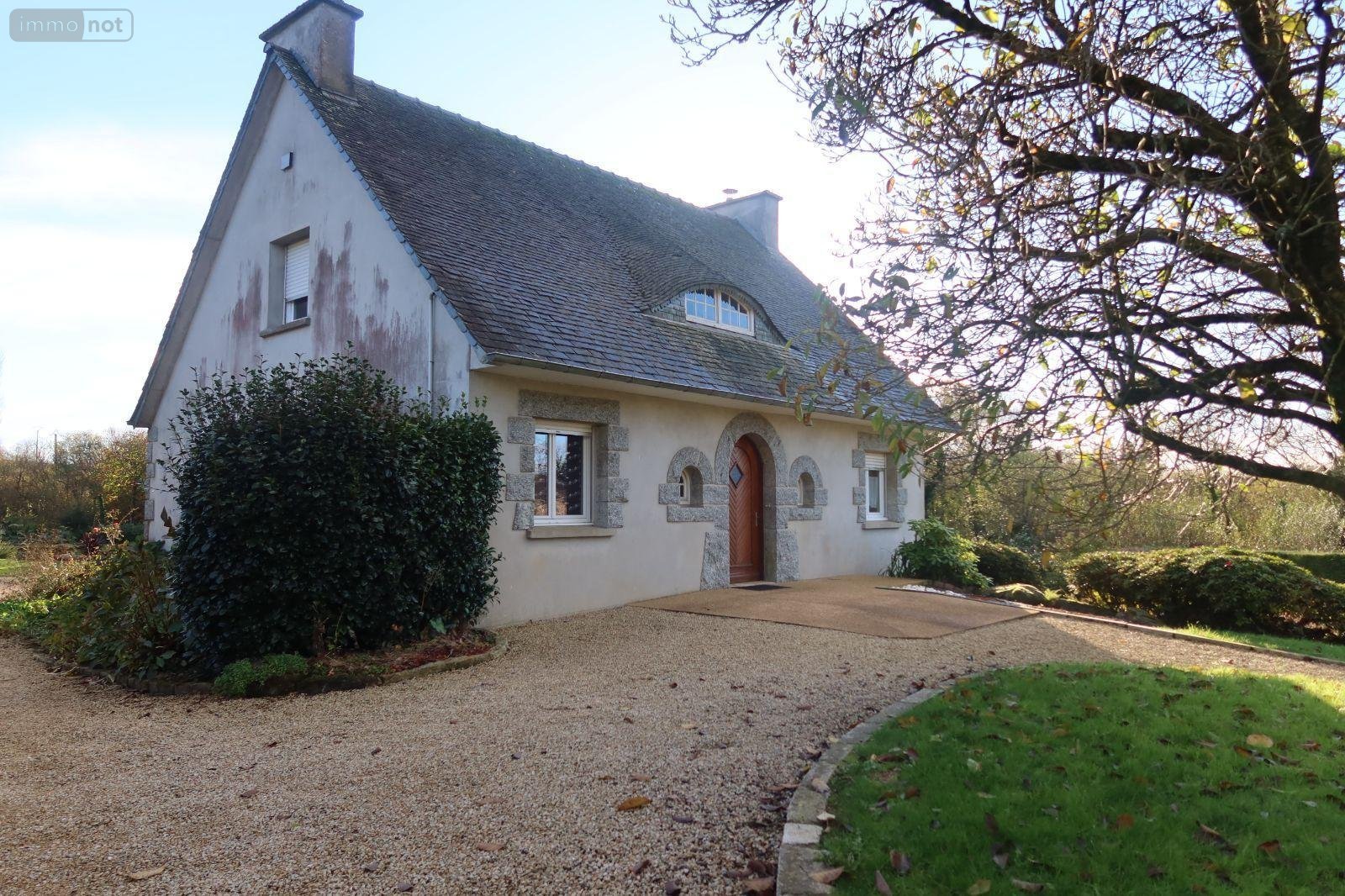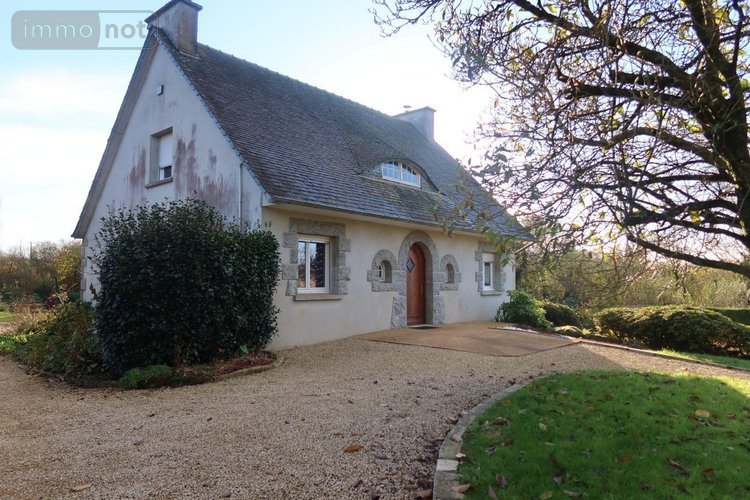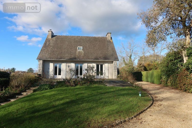 A vendre Immobilier- Finistère- Guimiliau- En campagne, propriété située dans un cadre bucolique, au calme et composée au rez de chaussée, une vie de plain pied : un hall entrée, une pièce salon séjour (cheminée insert) ouvert sur cuisine aménagée équipée, une chambres, une salle d'eau avec w.c (PMR) un w.c. A l'étage : trois chambres spacieuses, un w.c., une salle de bains. Sous sol complet compartimenté. Jardin avec bassin d'agrément- Le tout sur une surface totale de 3755m². Maison soignée et lumineuse.