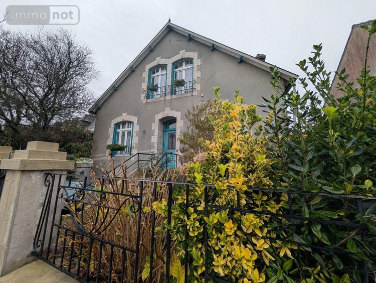 A vendre, Immobilier- FINISTERE- LANDIVISIAU- Centre-ville, maison d'habitation élevée sur sous sol et composée au rez de chaussée : une entrée, une cuisine aménagée, un salon séjour, une chambre, une salle d'eau avec w.c. Etage : trois chambres dont une avec lavabo et w.c., un bureau- sous sol complet- jardin - Une dépendance-atelier- Le tout sur une surface totale de 538m²