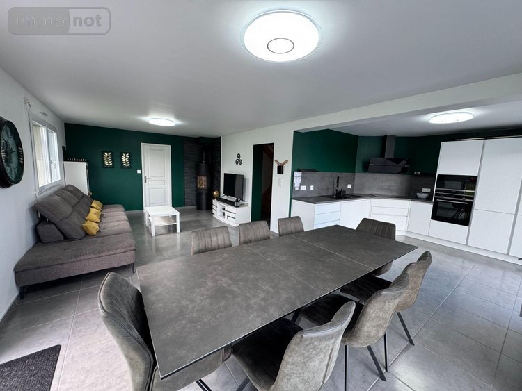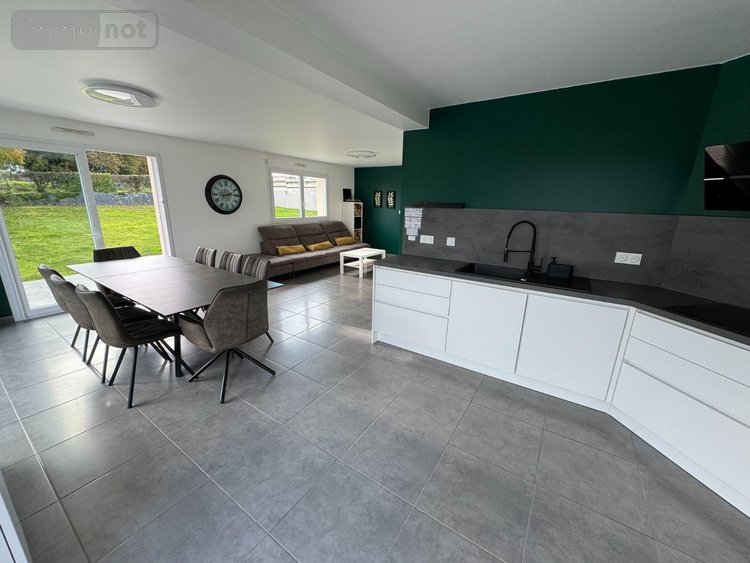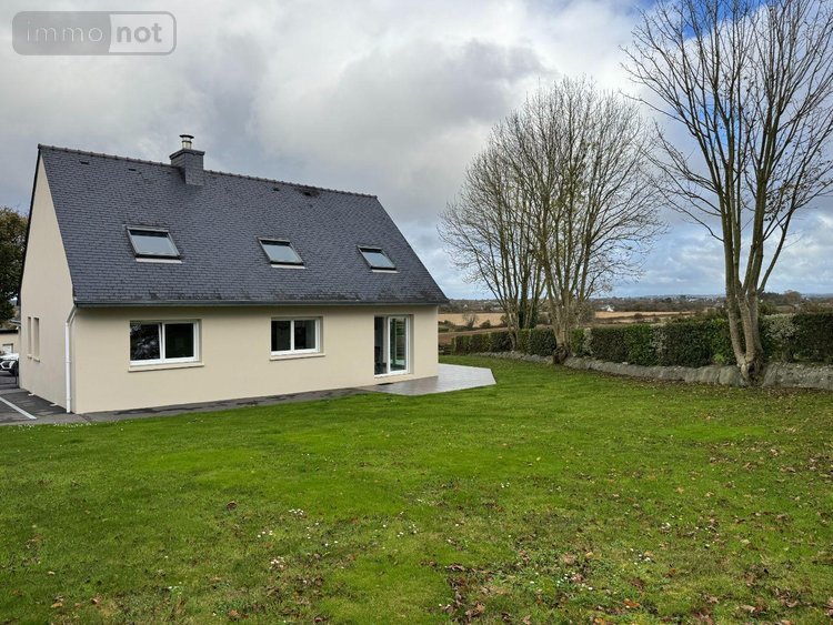 A Vendre Immobilier- Finistère- Lampaul-Guimiliau. Maison d'habitation de 2011, en parfait état et composée au rez de chaussée d'une entrée, une pièce principale salon séjour -cuisine aménagée équipée récemment refaite, un bureau, un w.c., une suite parentale (chambre, dressing, salle d'eau) Etage : 4 chambres, une salle de bains, un w.c., une mezzanine. Garage attenant. Le tout sur une parcelle de 945m². Belles prestations. Libre août 2026.