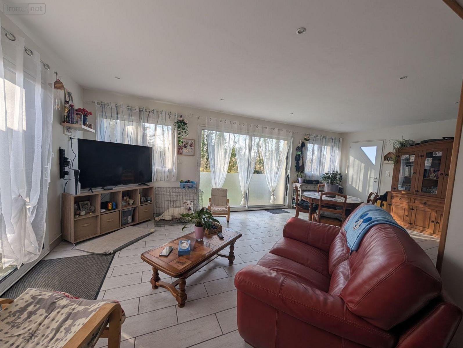 A vendre - Immobilier- Finistère- Landivisiau- A proximité immédiate du centre-ville, maison d'habitation spacieuse et lumineuse et composée au rez de chaussée : un espace de vie, salon séjour ouvert sur cuisine aménagée et équipée, une chambre, un w.c., un cellier. Etage : quatre chambres, une salle de bains avec w.c; Jardin clos-