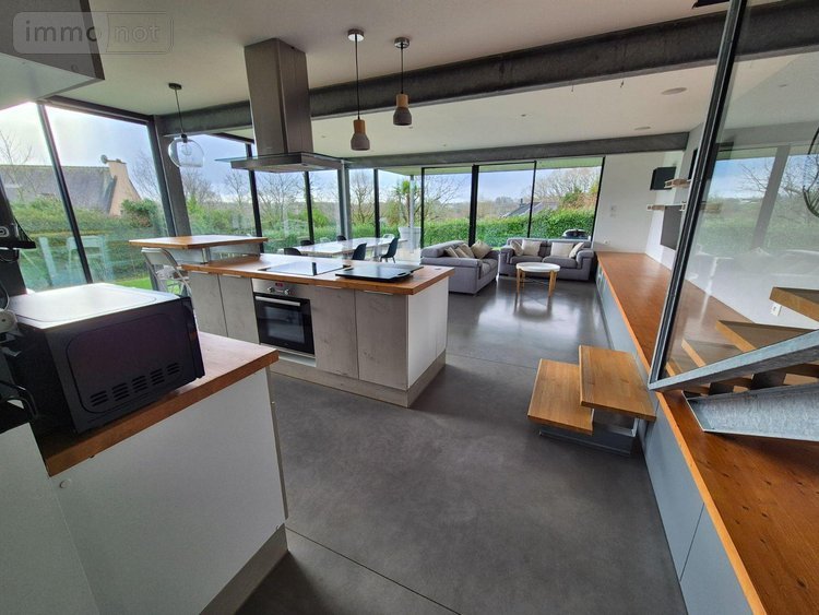 A proximité de Morlaix et du bourg de Plourin les Morlaix, maison à ossature métallique baignée de lumière du fait de ses ouvertures et de son exposition plein sud. Vous serez séduit par son côté "industriel" et ses beaux volumes. Ses 3 chambres sont idéales pour vous accueillir en famille. Son grand garage fera le bonheur des passionnés de bricolage. Ses extérieurs raviront les plus jeunes.