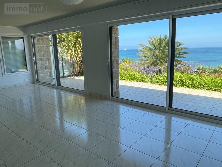 A vendre maison à SAINT POL DE LEON dans le Finistère. Maison avec vue mer exceptionnelle érigée en 1992 composée au rez-de-chaussée : entrée, cuisine aménagée avec coin repas, salon-séjour avec cheminée insert, une chambre, salle d'eau et w.c. - A l'étage : palier, deux chambres, salle d'eau avec w.c. Au-dessus : Mezzanine. Garage, cave et terrasse. Jardin de 1.300 m2. Chauffage aérothermie (2020). Fenêtres (2020). Très bon état général.