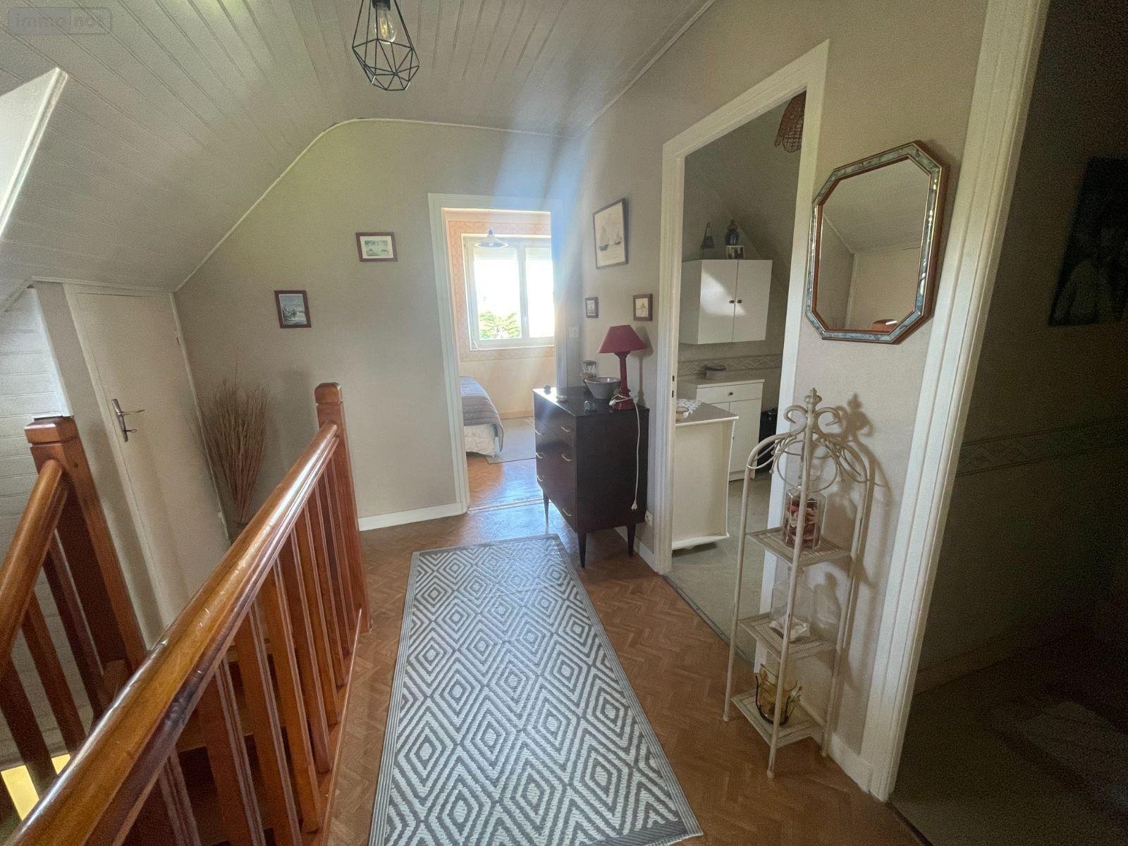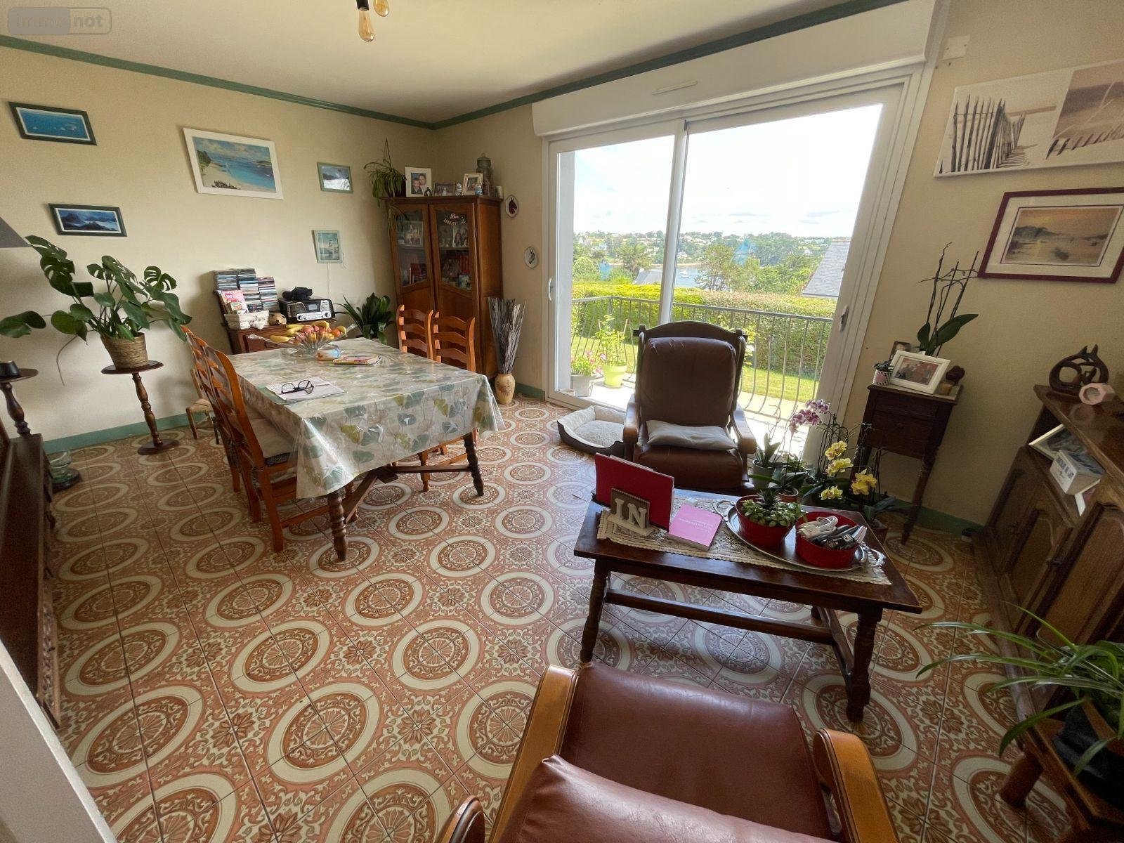 SAINT-PABU, VUE MER, environnement calme et à proximité des plages. Maison comprenant au rez-de-chaussée surélevé salon-séjour, cuisine, deux chambres, salle de bains et wc.