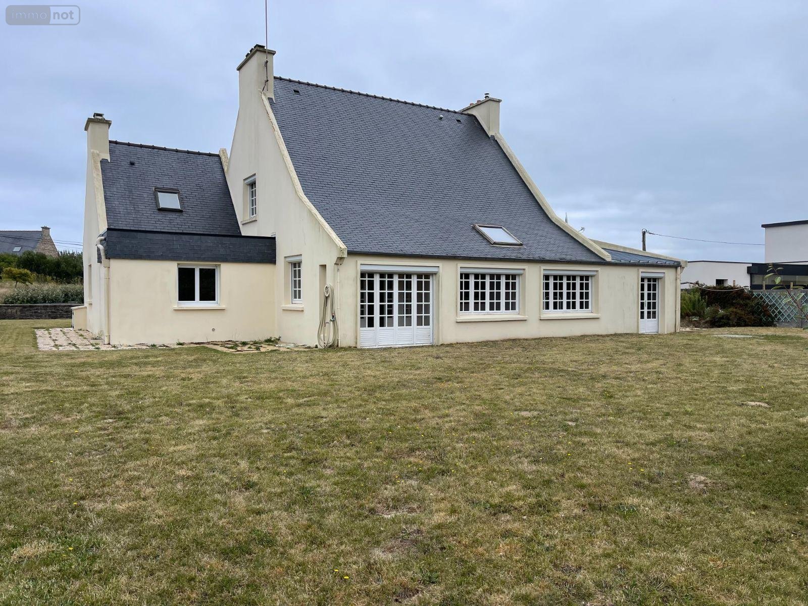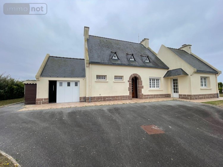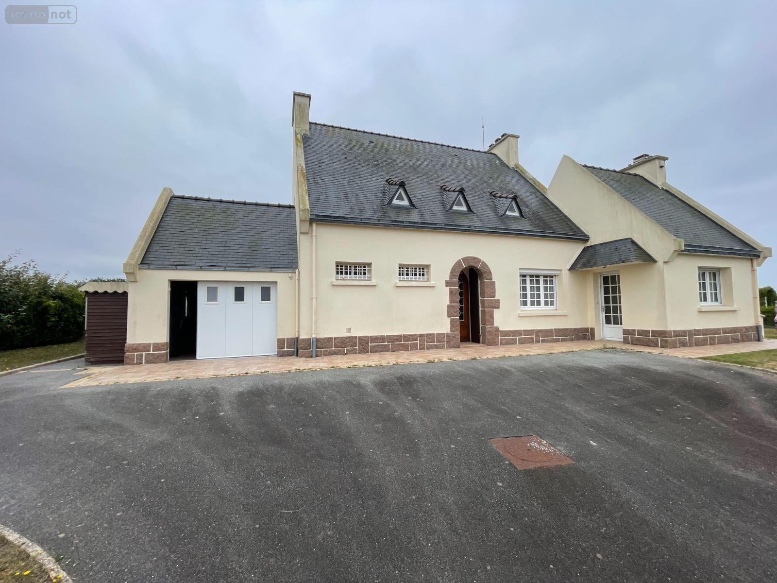 PLOUDALMEZEAU Située à 100 m de la plage de TREOMPAN, Maison d'habitation de 1969-1970 en parpaings comprenant au rez-de-chaussée un hall d'entrée, une cuisine, une salle d'eau avec WC, un salon-séjour, une chambre, une véranda, une kitchenette, une salle de bains, WC. A l'étage deux chambres, une salle d'eau, un dégagement. Garage accolé à la maison. Jardin d'agrément et potager avec un abri.