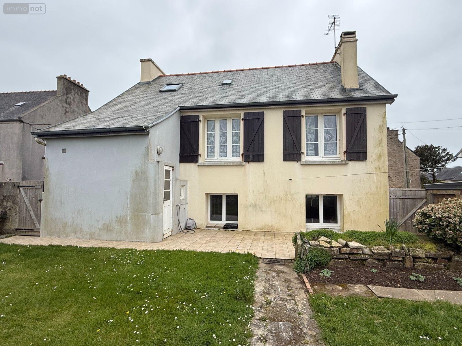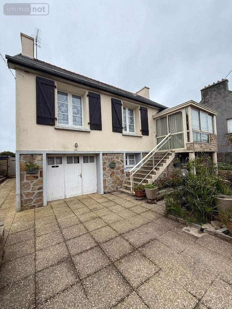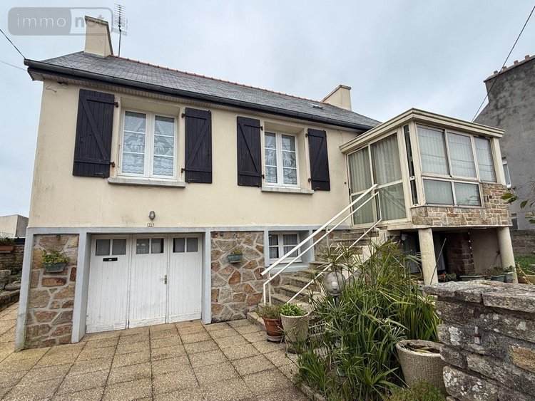 PLOUDALMEZEAU - CENTRE BOURG - Maison d'habitation comprenant un sous sol entier : un garage, une buanderie, une chaufferie, un coin de rangement. Au rez-de-chaussée surélevé : une véranda d'accès, un WC, une salle d'eau, une cuisine ouverte sur coin repas, un salon, une chambre avec placard, un dégagement. A l'étage : deux chambres, une pièce de rangement