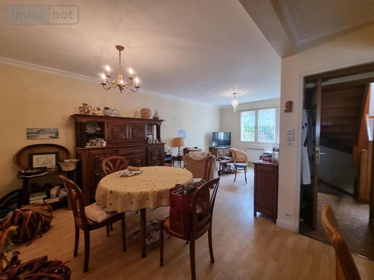 Située à QUIMPER, proche des écoles et transports, construite sur un garage double, Sur une parcelle de 90 m², maison des années 80 comprenant en rez-de-jardin: dégagement avec accès au jardinet. Au 1er étage: dégagement, salon séjour, cuisine ouverte, salle d'eau, Wc.