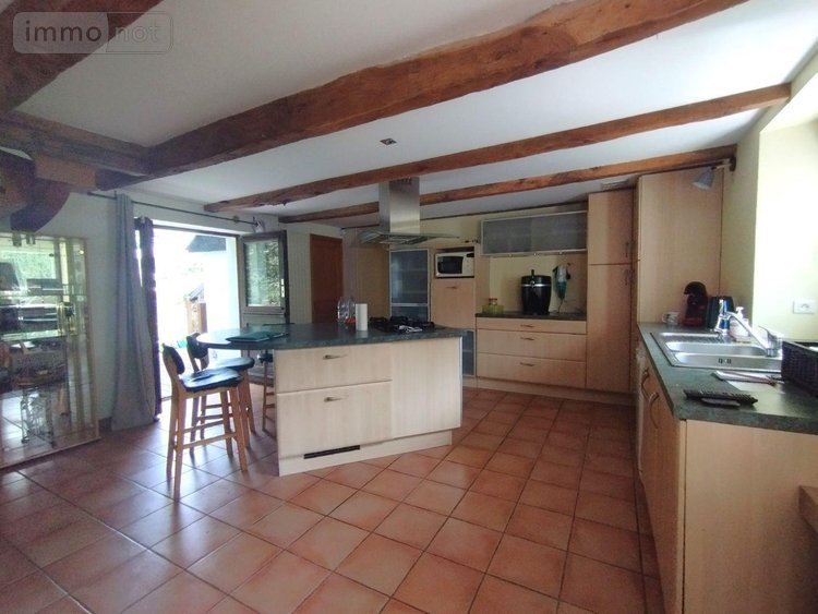 D'une superficie de 133m² env. elle comprend : entrée, séjour et cuisine ouverte avec accès à la terrasse, deux chambres dont une avec une ancienne salle d'eau, buanderie et WC. Aux étages: d'un coté une mezzanine et une chambre en enfilade et de l'autre côté deux chambres et une SDE avec WC. Jardin et parking.
