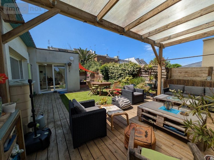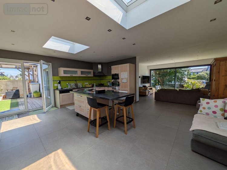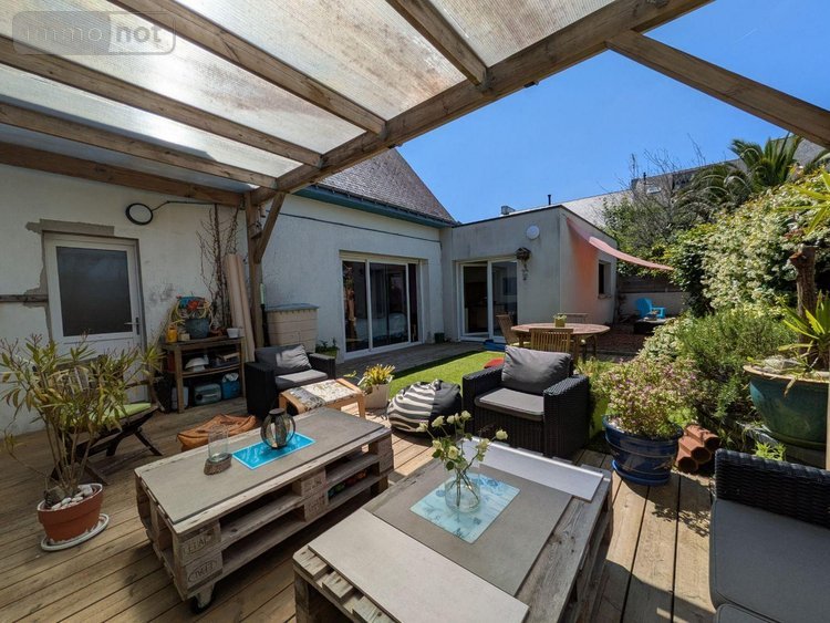 Guidel, au calme, avec à proximité immédiate commerces et centre ville. Cette charmante maison avec extension lumineuse de 2012 se compose comme suit: