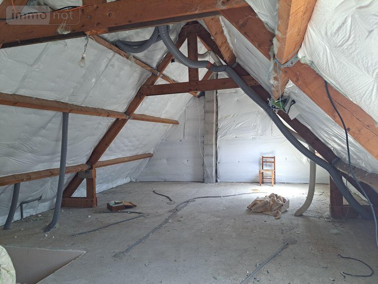 Maison d'habitation composée d'une entrée, cuisine A/E ( four, plaque, hotte), salon/séjour avec poêle à bois donnant sur véranda, WC, salle de bains ( baignoire, lavabo, bidet), 2 chambres; Etage 1 : grenier à aménagé, équipé de 2 velux, sur dalle béton; sous sol complet : garage, cave/ buanderie; terrain de plus de 4600 m² avec Hangar d'environ 80 m² au sol
