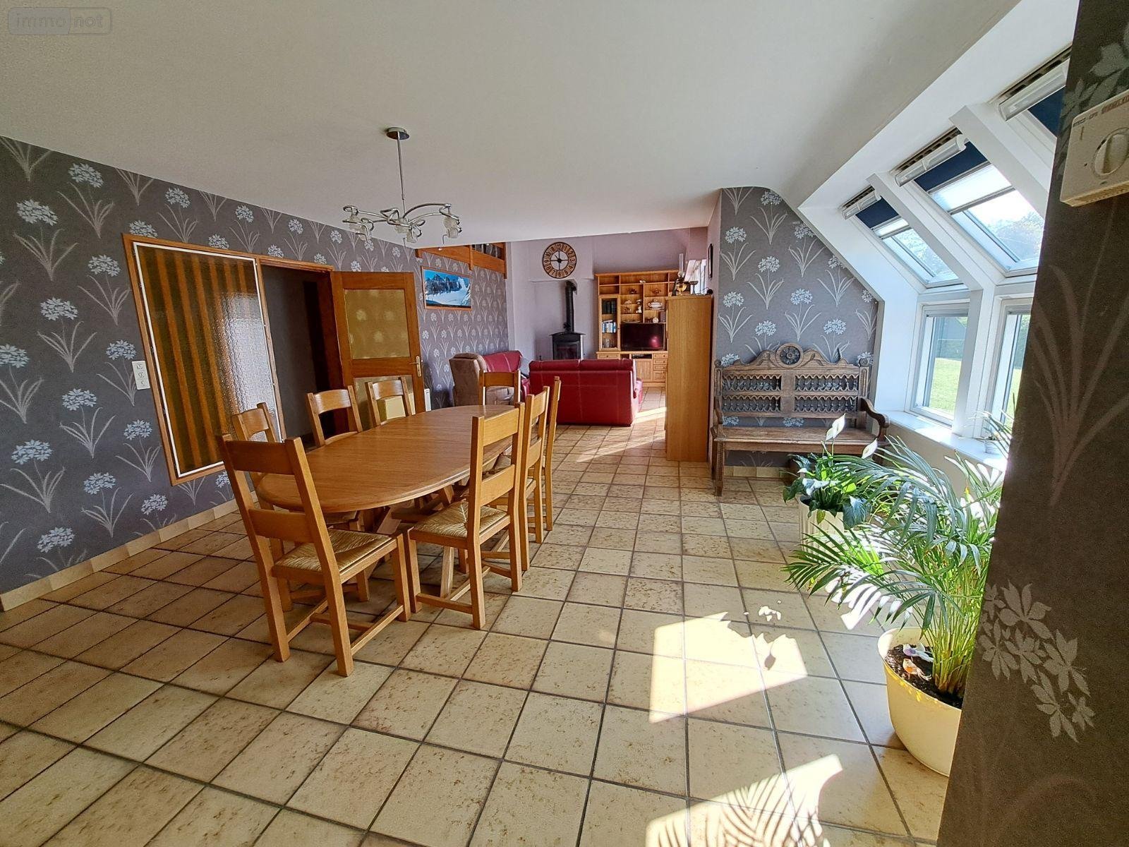 - Rez-de-chaussée: grande pièce de vie d'environ 50m² avec poêle à bois récent, cuisine aménagée et équipée, une chambre et une salle d'eau, WC séparé.