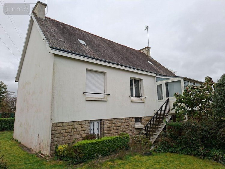 AUX PORTES DE QUIMPERLE - maison d'habitation sur sous sol complet composé en rez de jardin : garage, bureau, 1 pièce; à l 'étage : entrée, WC, dégagement avec placard, cuisine aménagée, salon/séjour avec cheminée insert donnant sur véranda, salle d'eau ( douche, vasque sur meuble), 2 chambres; l'ensemble sur un terrain de 586 m² à proximité des écoles et commerces de QUIMPERLE