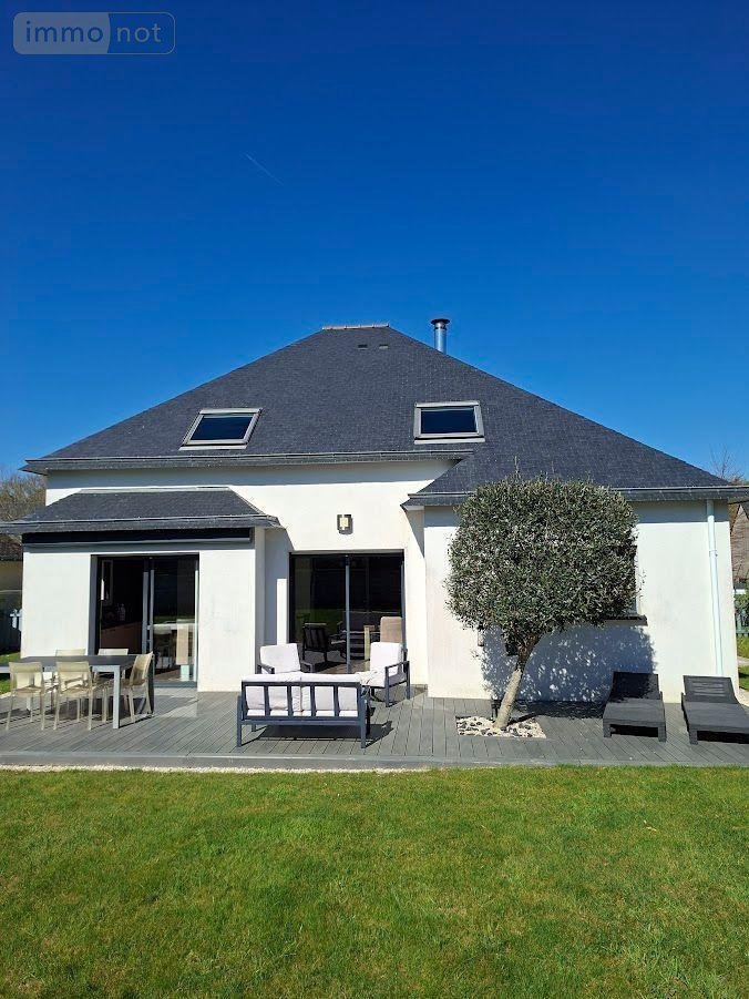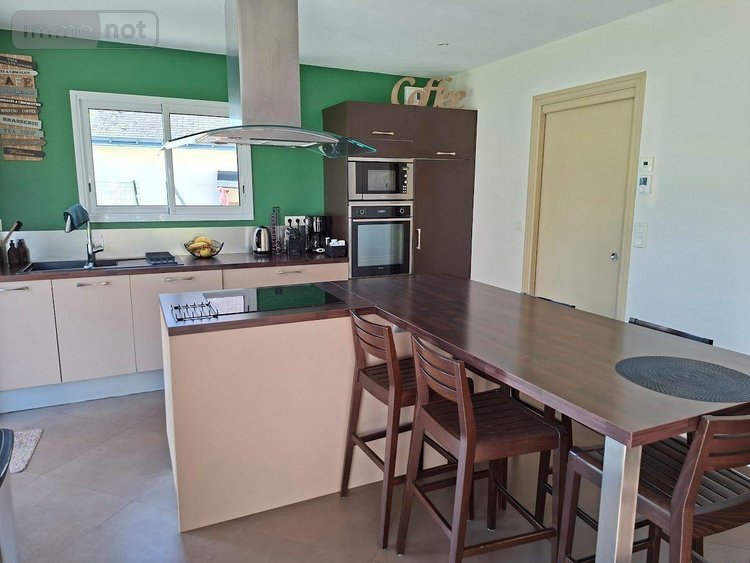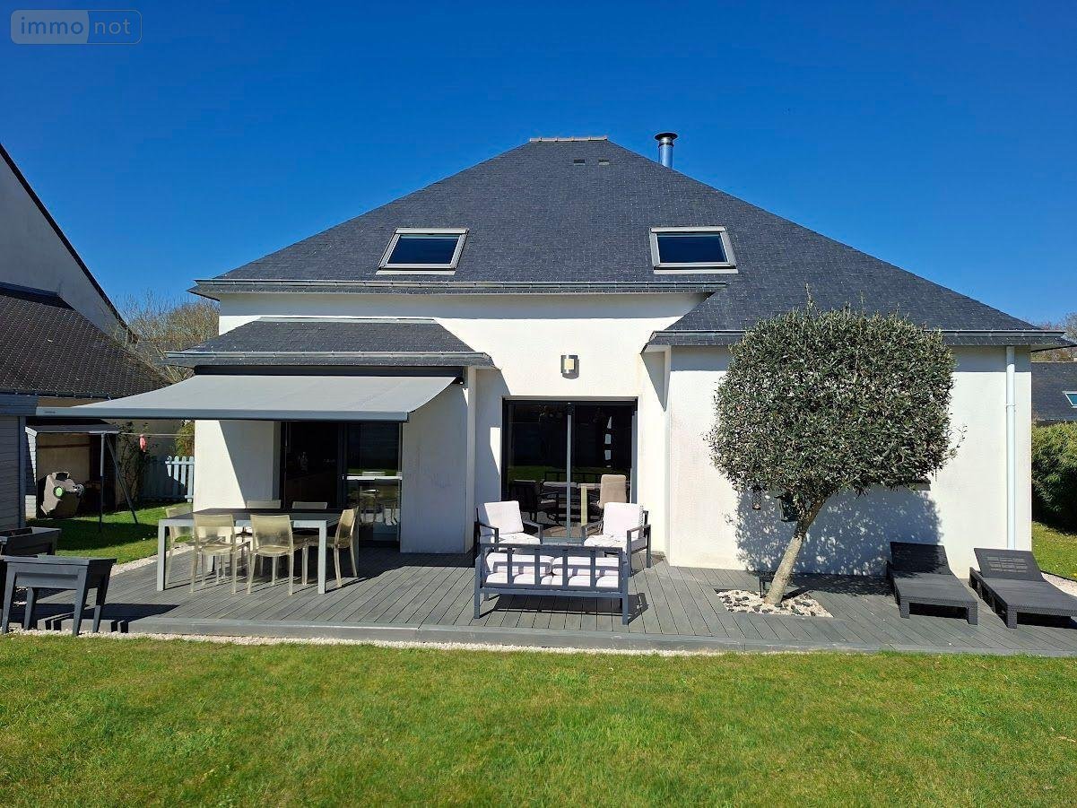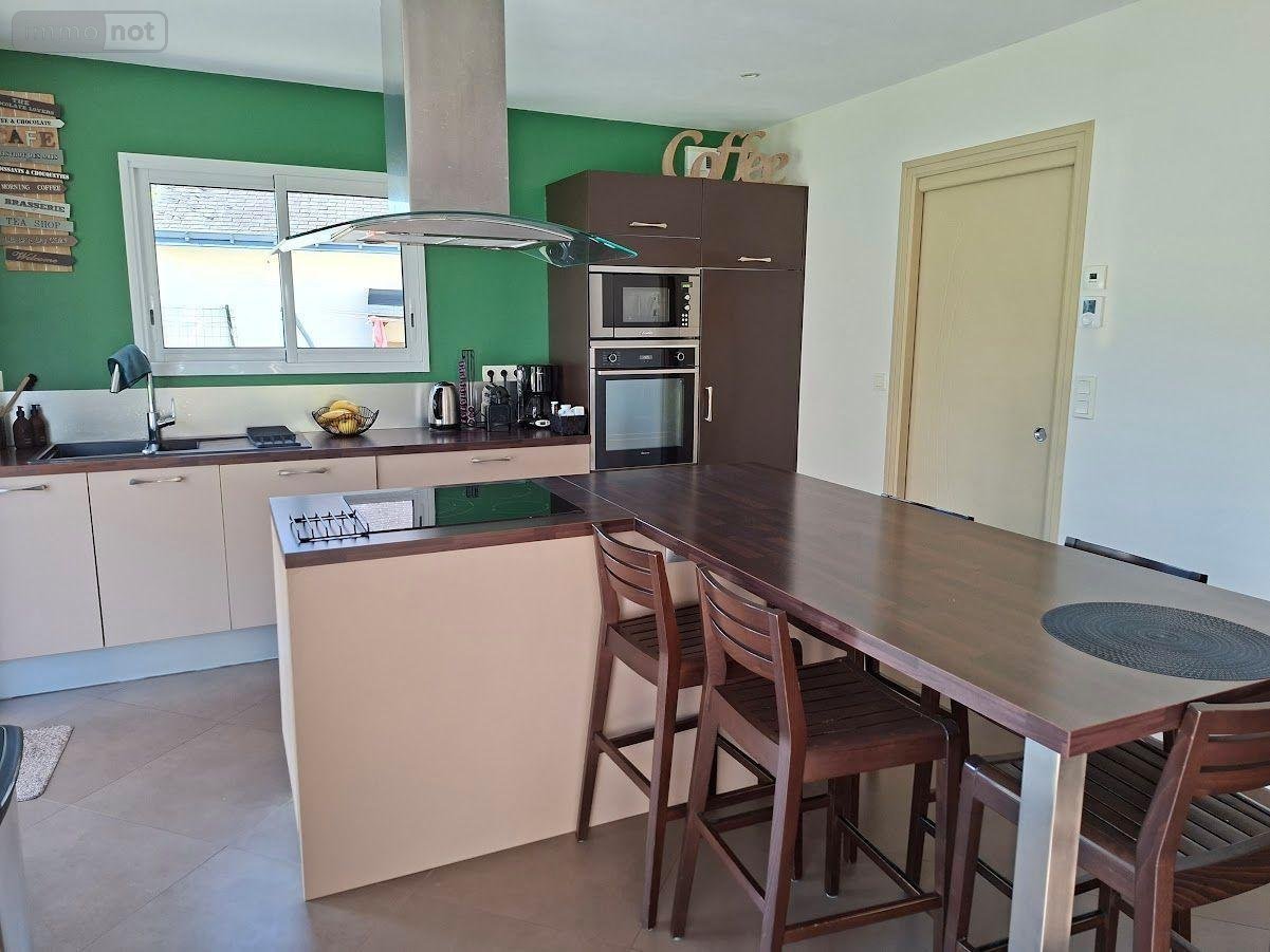 Contemporaine au centre bourg de REDENE - Vie de plain pied - composée d'une entrée avec placard, WC avec lave mains, 1 chambre avec espace dressing et salle d'eau privative ( douche, lavabo), salon/séjour avec poêle à bois, cuisine ouverte aménagée équipée, buanderie/cellier; à l 'étage : 3 chambres avec rangements, mezzanine /espace jeux ou bureau, salle de bains ( baignoire, vasque); garage; abri de jardin; l'ensemble sur un terrain de 587m²