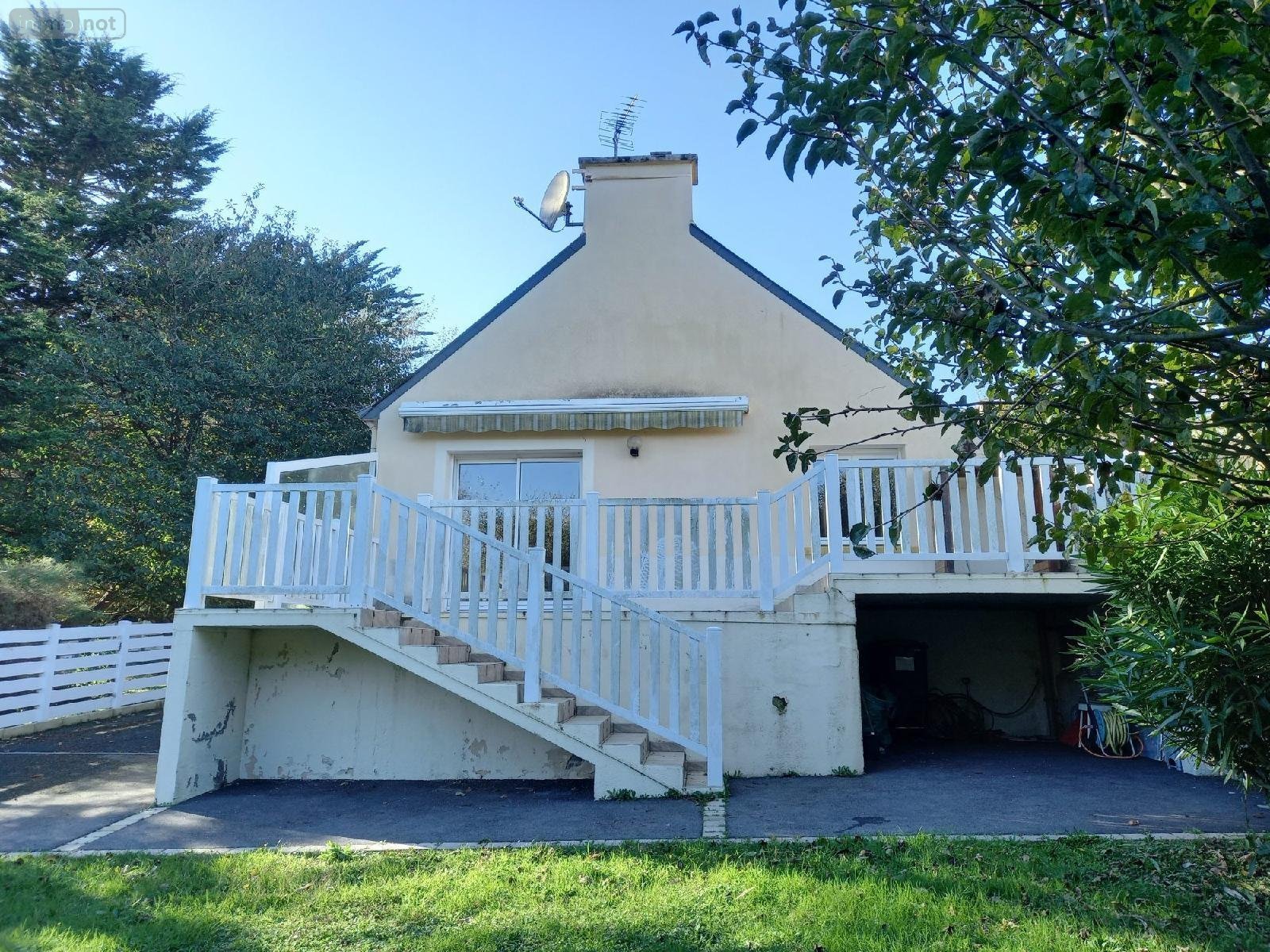 CAMARET SUR MER - Proche quais et commerces, maison de plain pied de 1993, sur vide-sanitaire, en bon état général, offrant entrée, séjour, cuisine ouverte, cellier, 2 chambres, bureau, salle d'eau avec wc. Terrasse et jardin clos, le tout sur terrain de 477 m².