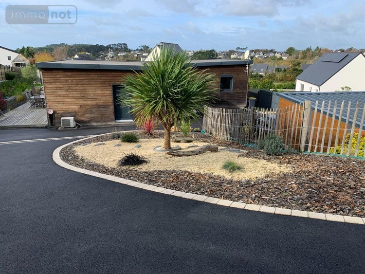 TELGRUC SUR MER - Proche du bourg et de la plage - Maison neuve de plain-pied avec d'excellentes qualités énergétiques et composée d'une pièce de vie avec cuisine aménagée et équipée, 3 chambres dont 1 avec salle d'eau privative, 1 salle d'eau, garage et carport sur terrain aménagé et clos de 997m².