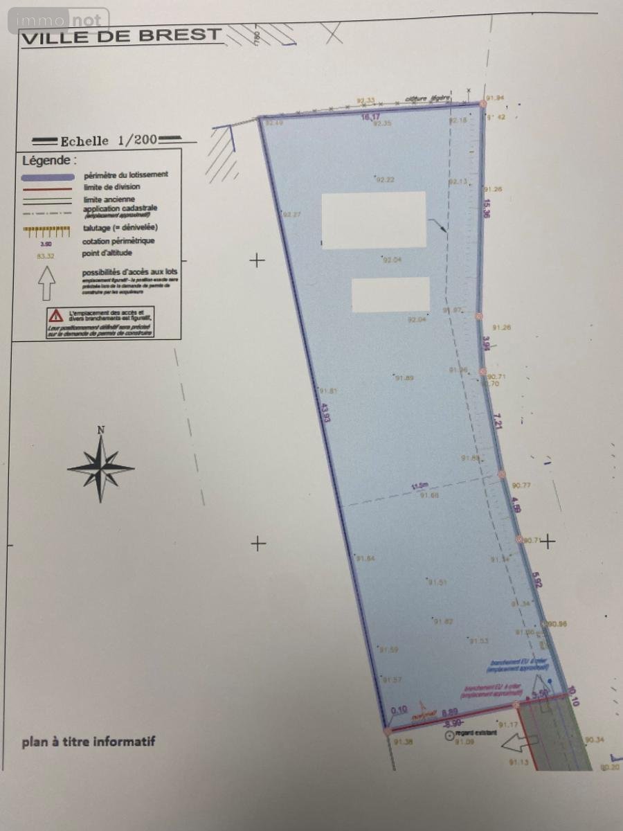 BREST - SAINT-PIERRE - Proche toutes commodités - Terrain constructible d'environ 628 m2, hors lotissement, viabilisation en bordure de rue, assainissement collectif, libre de constructeur.