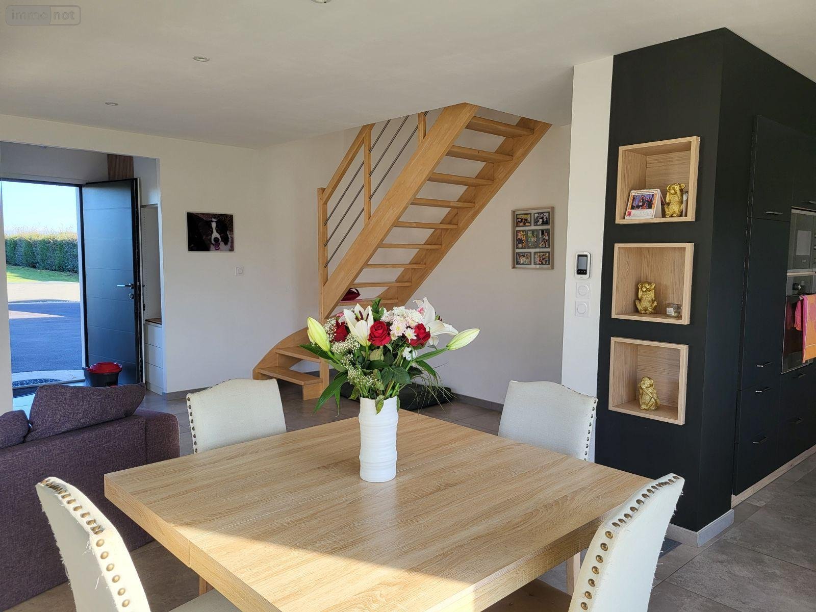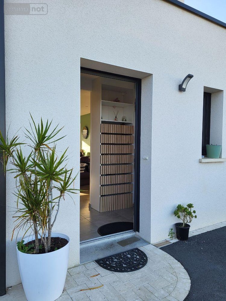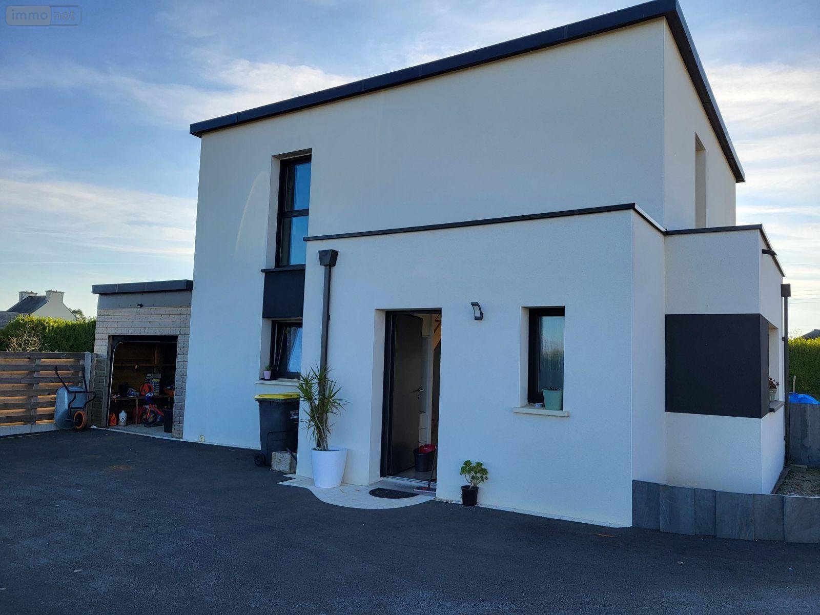 Maison à vendre à ROSCOFF (29680) - Sortie de ville, Rue de Kerfissiec, maison individuelle de 2021 d'environ 112 m2 comprenant, entrée, rangement, belle pièce à vivre de 45 m2 ouverte sur cuisine équipée, une chambre avec salle de bains privative, cellier/Chaufferie (PAC)/ buanderie, garage, WC.