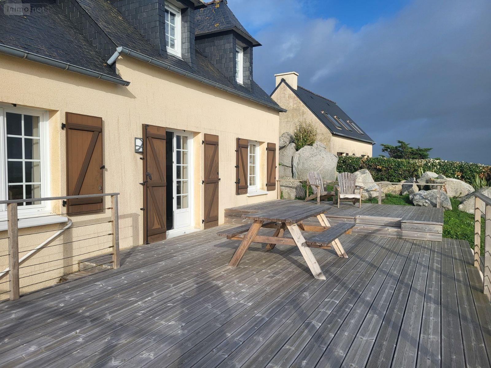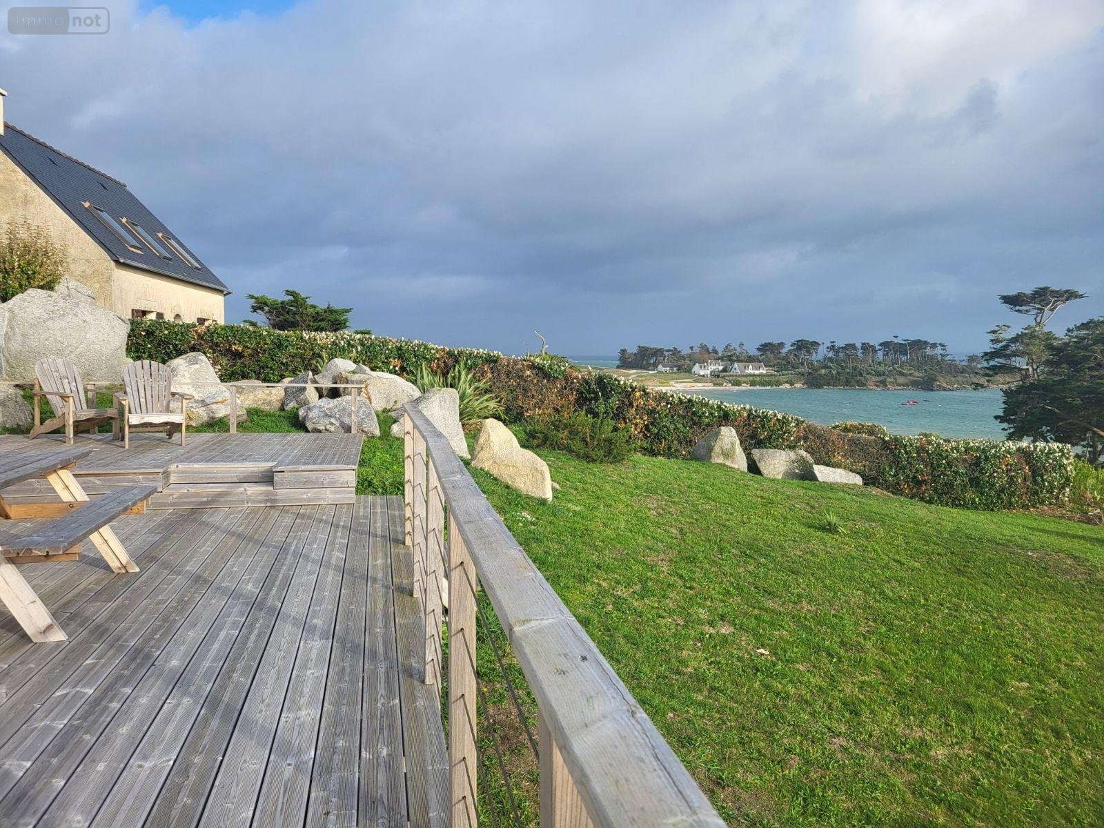 Maison à vendre à l'Ile de Batz (29253) - VUE MER IMPRENABLE - Accès immédiat plage de Pors Alliou - Maison individuelle comprenant entrée, grande pièce à vivre en angle avec cuisine équipée, exposition Sud et donnant sur grande terrasse bois, une salle de bain, WC. A l'étage 3 chambres, salle de bains, WC. Au sous sol, buanderie, pièce de rangement et cave. Rare.