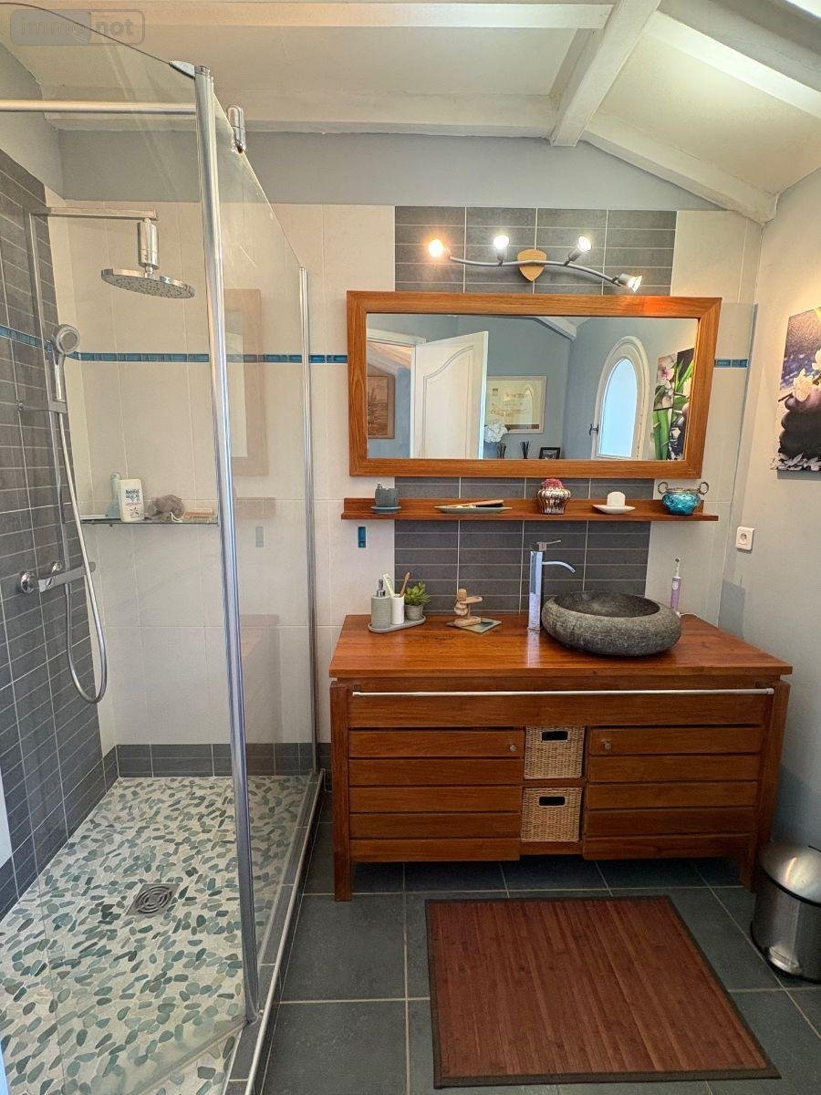L'étage quant à lui comprend une rochelle (ou mezzanine), un bureau et une chambre avec salle de bains et toilettes.