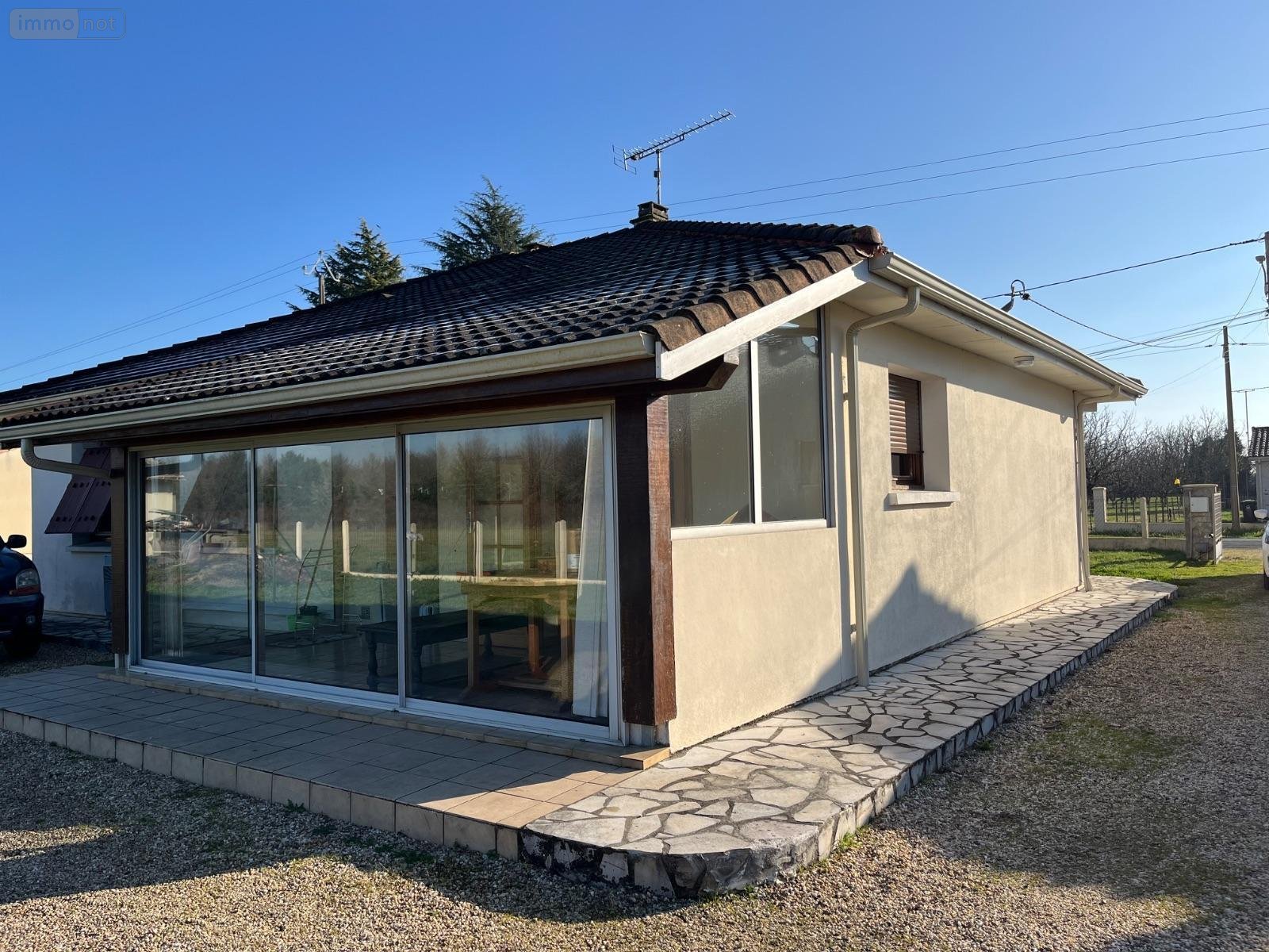 Maison à Vendre à Coutras (33230) en Gironde (33), sur un terrain de 974 m², maison de plain pied de 82 m² hab comprenant un séjour 31,6 m² avec une cheminée/insert, une cuisine aménagée (11,2 m²), 3 chambres (9,2 m², 9 m², 10 m²), salle d'eau, wc, chaufferie, véranda 10 m², grands garages (90m²)