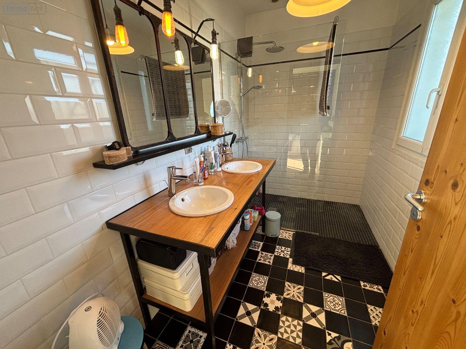 RDC : Entrée 4.8 m², grand salon/salle à manger de 42 m² sur terrasse et jardin, cuisine 12.7 m², cellier 2.3 m², dégagement, WC 1.4 m², chambre parentale 12.7 m² avec placards, salle d'eau attenante 5 m²