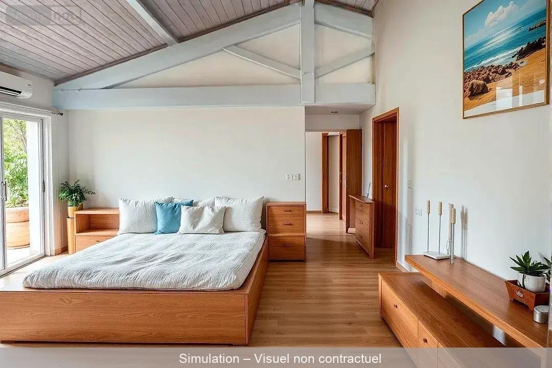 L'espace nuit se compose de trois chambres, dont une suite parentale avec salle de bain, WC et dressing privatifs. Une salle d'eau indépendante ainsi que des toilettes séparées complètent l'aménagement intérieur, pensé pour le confort au quotidien.
