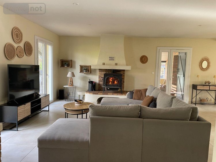 La maison offre une agréable pièce de vie très lumineuse avec salon-salle à manger et cuisine ouverte, créant un espace convivial et chaleureux, complété par un cellier.