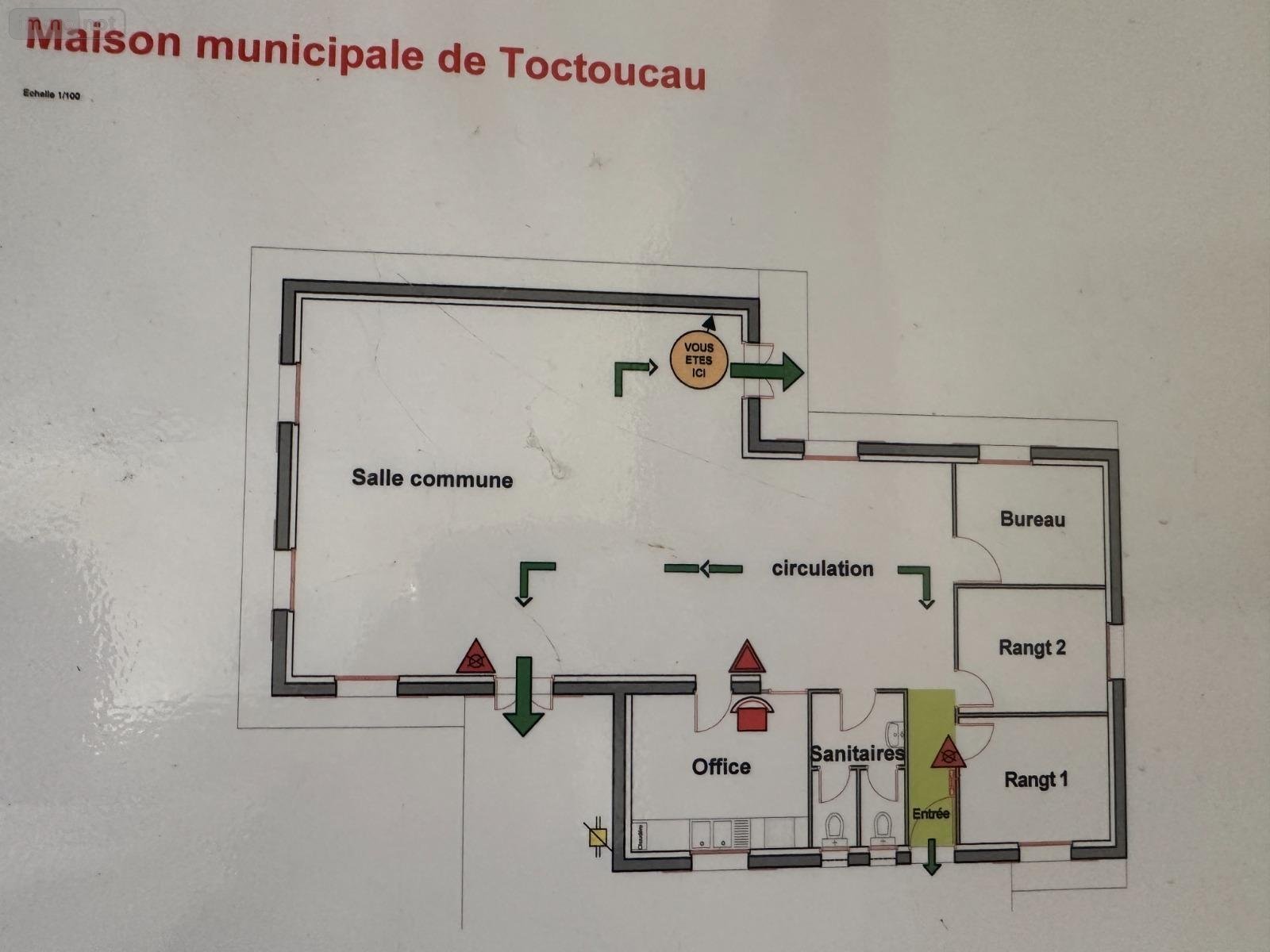 Toctoucau: quartier familial avec commerces, poste, mairie annexe, école, profession médicales - PESSAC TOCTOUCAU : à vendre, 3 avenue Georges Pelletier, une maison de plain pied de 125m², très lumineuse, comprenant : entrée, 4 pièces dont une de 80m², cuisine de 10.53m² et 2 WC indépendants. Elle était la maison de quartier de la commune et servait de lieu d'accueil aux associations. Certains aménagements sont nécessaires à l'accueil d'une famille.