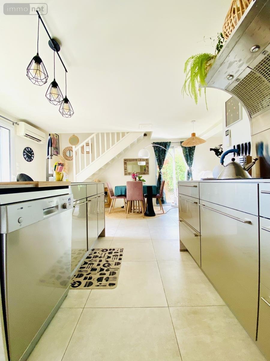 Mitoyenne d'un seul côté, elle développe une surface habitable de 90 m² sur une parcelle de terrain d'environ 269 m².
