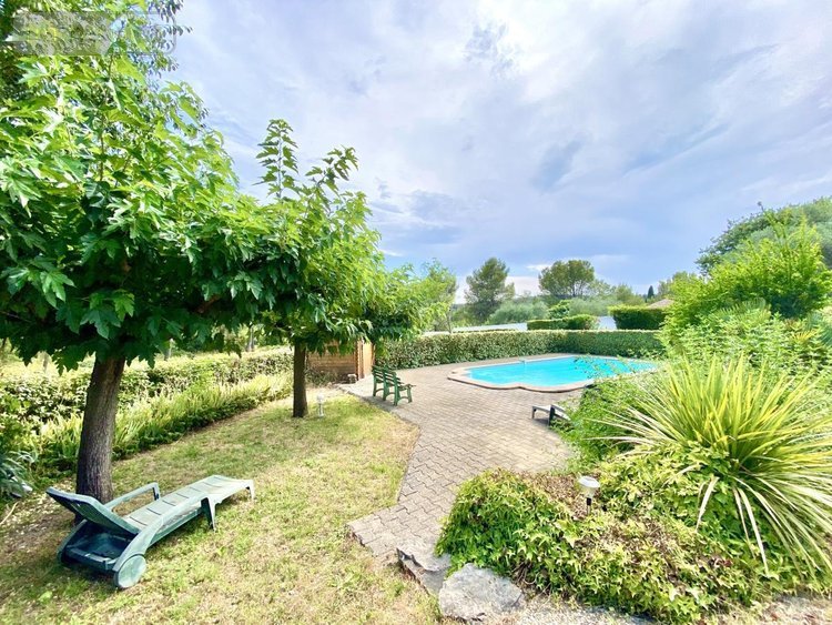 De construction traditionnelle, la maison se compose d'une entrée, un séjour/salle à manger exposé sud et prolongé d'une terrasse face à la piscine et la garrigue, cuisine indépendante avec cellier attenant, trois chambres, une salle de bain, deux WC. Le bien se voit complété d'un grand garage de 23 m² ainsi que d'un abri voiture de 20 m².