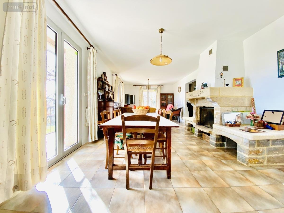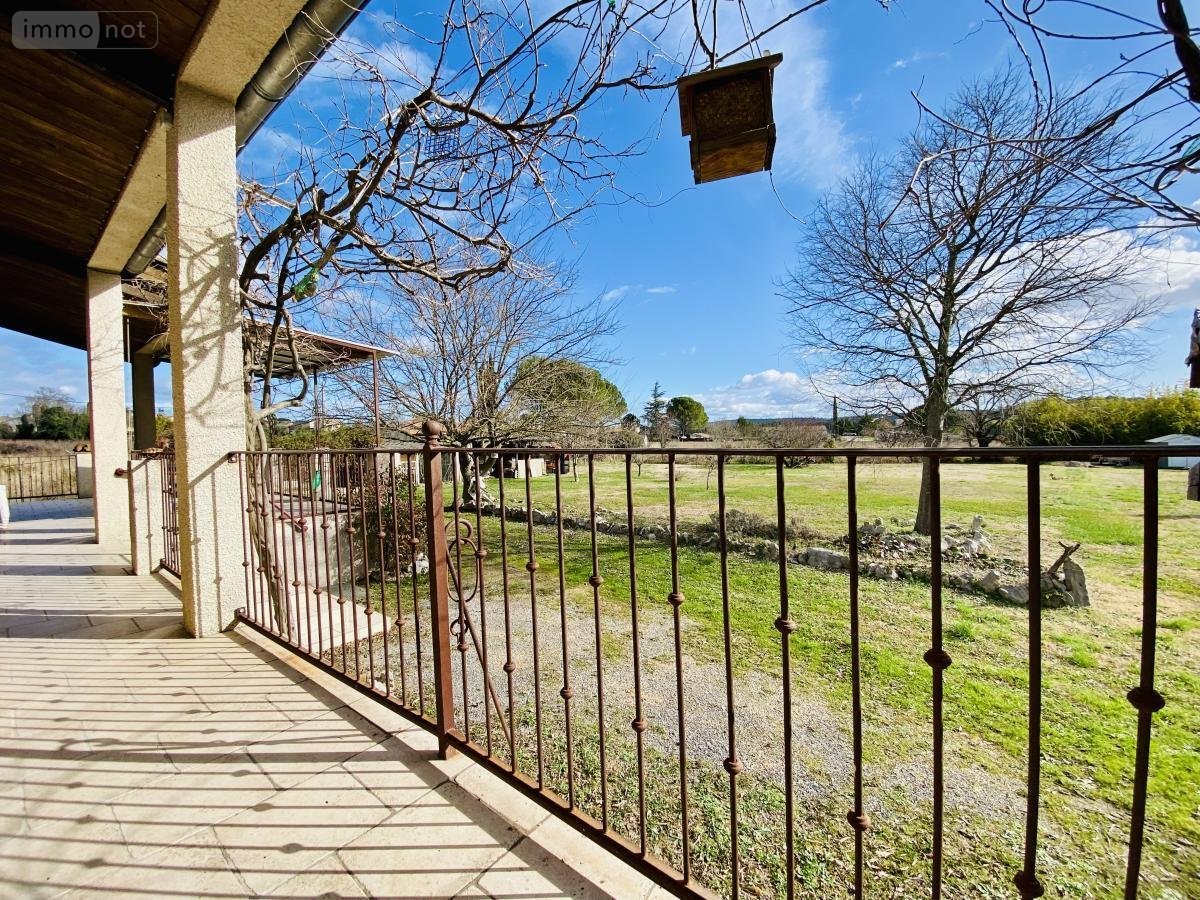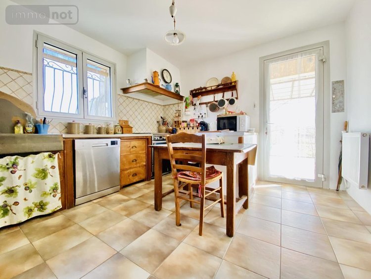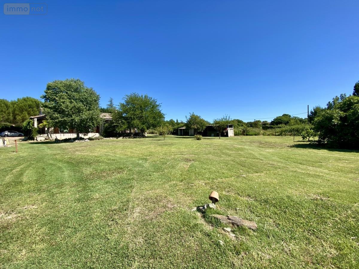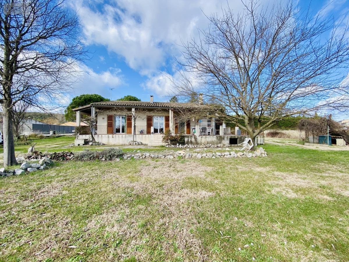 La maison développe une surface de 104 m² habitables et se compose d'une entrée, d'un séjour de 33 m² avec cheminée exposée SUD et prolongée d'une grande terrasse avec vue sur la garrigue, d'une cuisine indépendante de 13m² pouvant être ouverte sur la pièce à vivre, d'un cellier attenant, d'un coin nuit avec trois chambres de 11 m² en moyenne, une salle d'eau et un WC Indépendant. Grand garage de 25 m², atelier de 13 m² et autres dépendances.