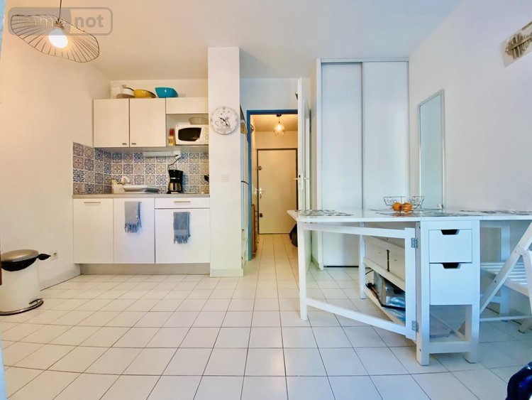 Dans la résidence Les flamants roses, construite dans les années 1990, appartement de 23.24 m² habitables, au premier étage sur 3, sans ascenseur comprenant : une entrée avec espace permettant d'accueillir des lits superposés, une salle d'eau et un WC séparé, une pièce principale avec coin cuisine et grandes baies vitrées offrant un maximum de luminosité, un coin cabine de 3.51 m².