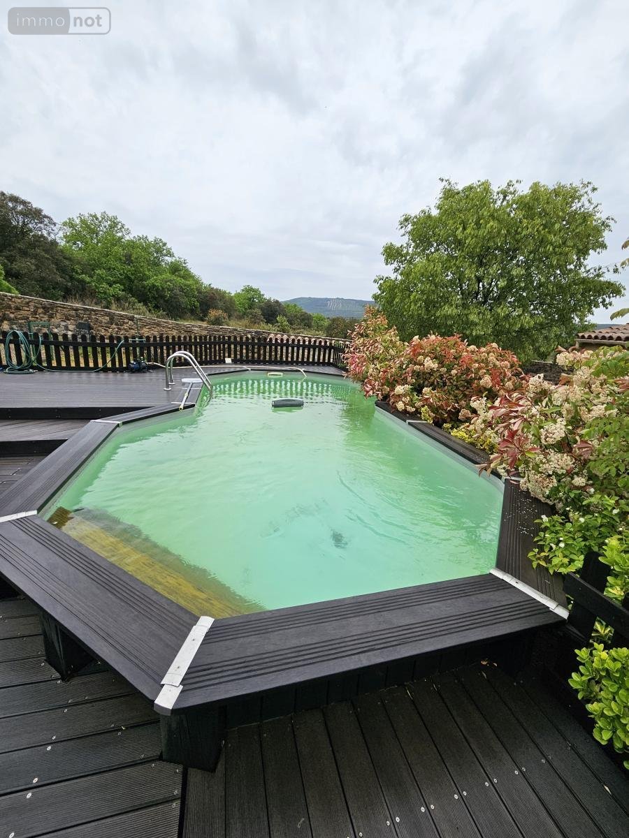 L'ensemble sur terrain clos et arboré de 1500 m² avec garage, dépendances et piscine hors sol (7X3).