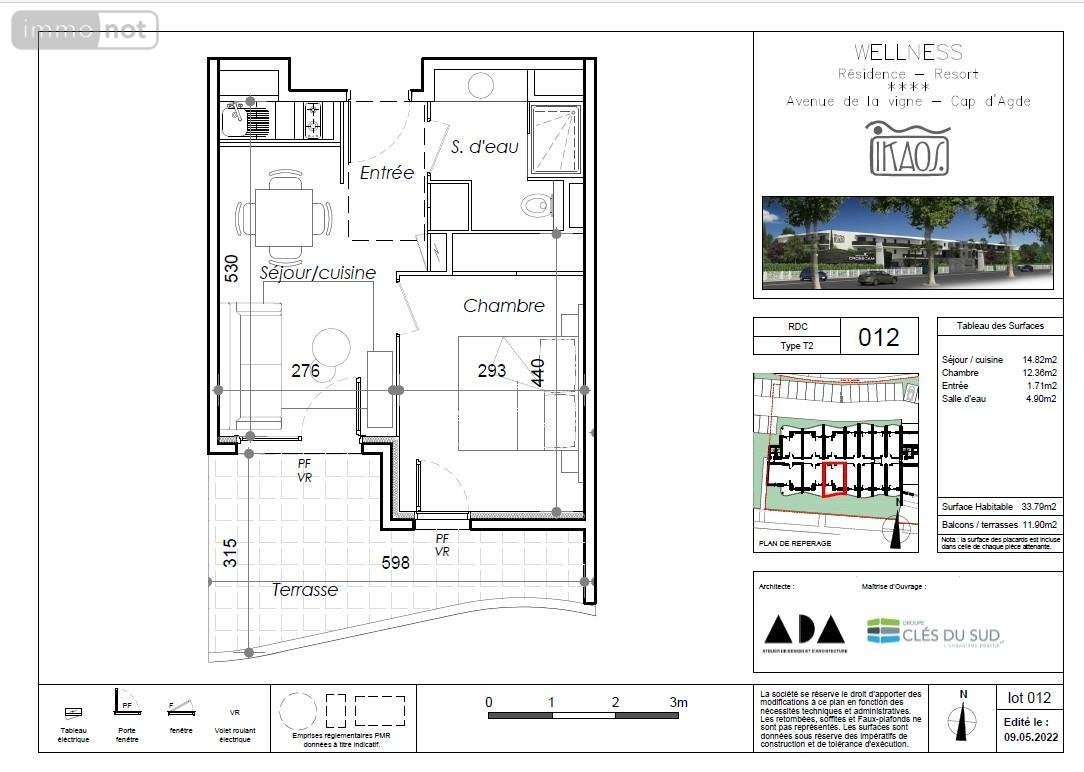 T2 33.79m² avec grande terrasse 11.90m²