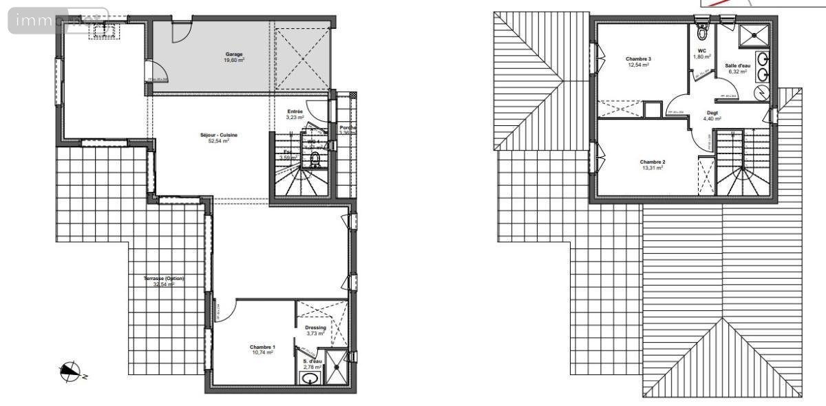 composée au d'un grand séjour cuisine donnant sur jardin paysagé, une suite parentale avec dressing et salle d'eau, wc