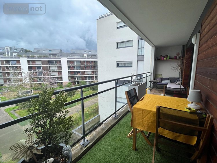 Une entrée, une grande pièce de vie donnant sur une terrasse sans vis-à-vis, une cuisine aménagée et équipée, un dressing, deux chambres donnant sur un balcon, une salle d'eau et un WC séparé.