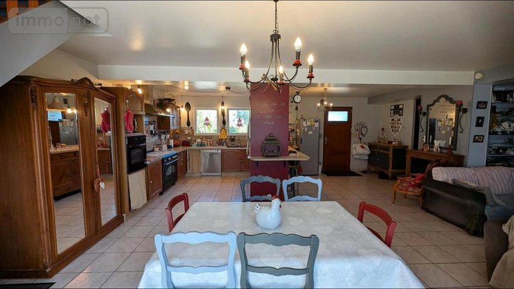 Une maison d'habitation construite en parpaings, pierres et terre, couverte en ardoises naturelles, comprenant : - au rez-de-chaussée : entrée ouvrant sur cuisine, salon-séjour, dégagement, wc, dressing, salle d'eau, une chambre. - à l'étage : dégagement/bureau, trois chambres, wc, salle de bains. Un accès à l'arrière cuisine par la pièce principale et un garage attenant et un carport. Jardin tout autour.