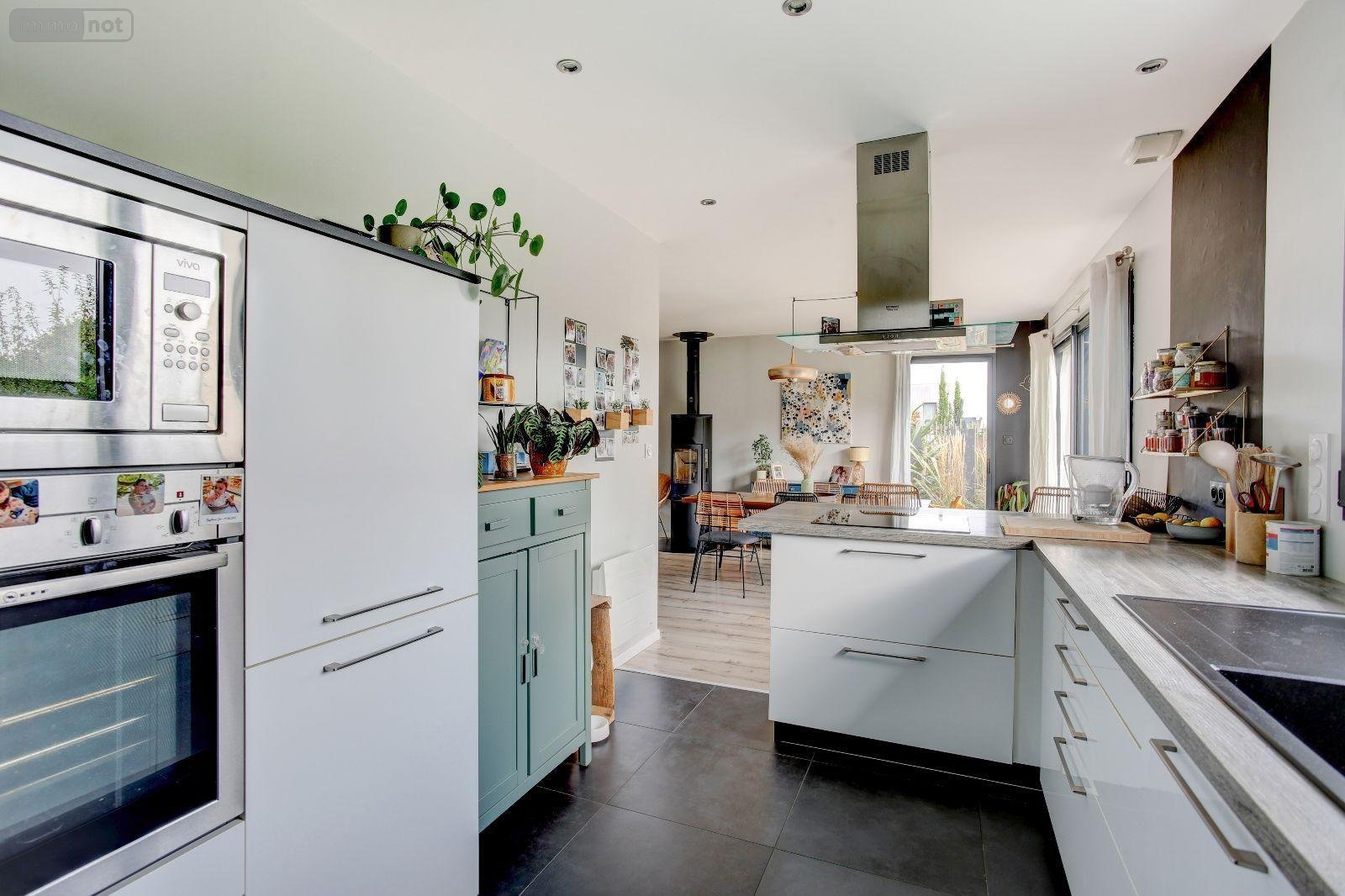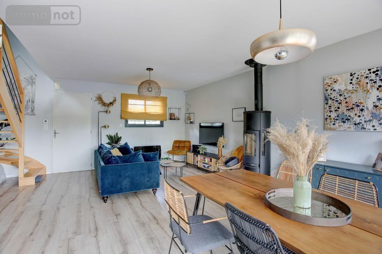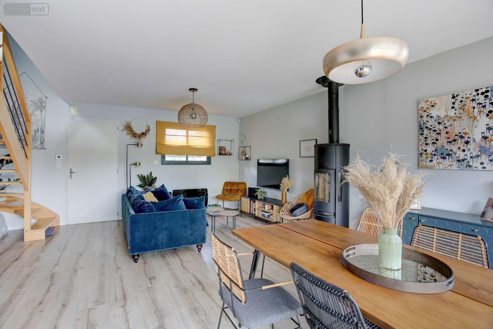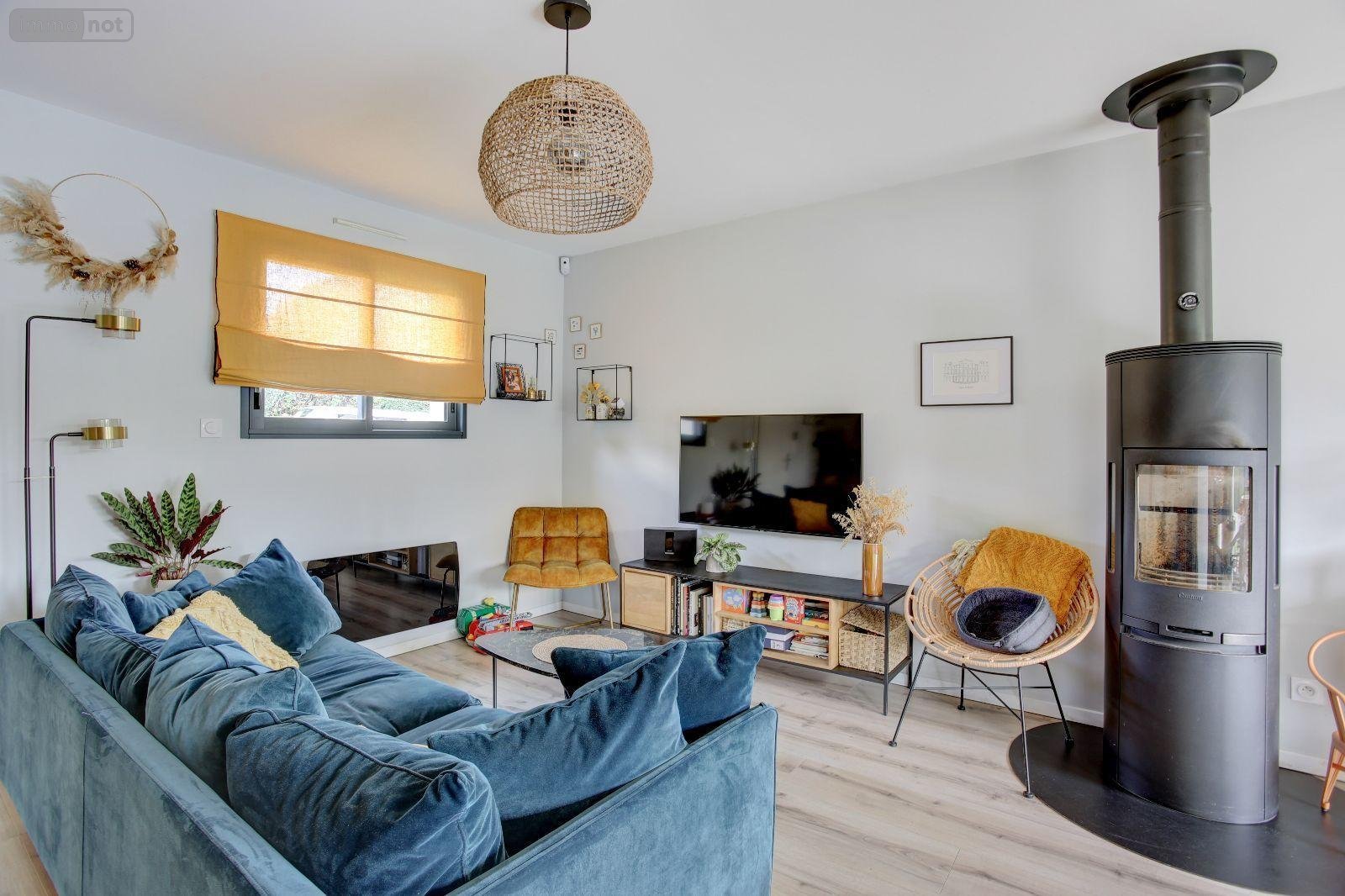 15 mn de Rennes, belle contemporaine, sans vis-à-vis, lumineuse, intérieurs soignés, décoration chaleureuse, parquets, Elle se compose au rez-de-chaussée, un séjour salon avec poêle à bois, donnant sur une cuisine aménagée et équipée, une chambre, salle d'eau, wc, Placard.buanderie, garage.
