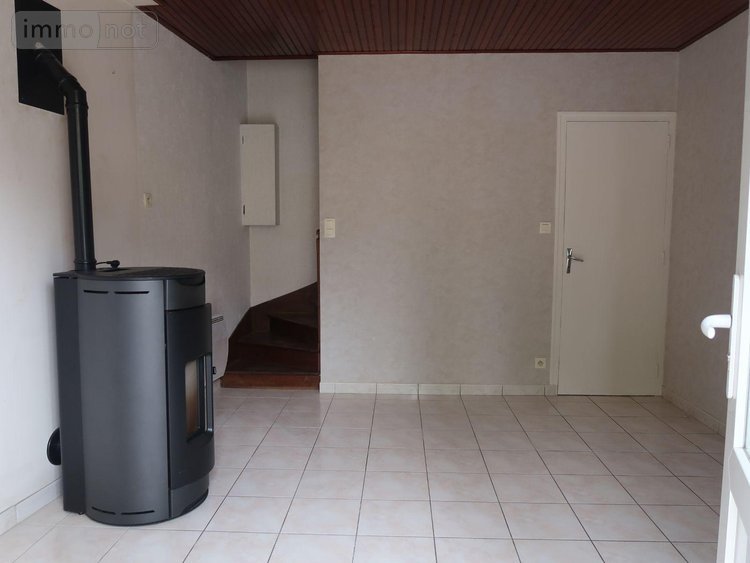 Maison à Louer à Irodouër (35850) en Ille-et-Vilaine (35) composée de 3 pièces, un séjour avec poêle à pellets, placard, une cuisine ouverte aménagée et équipée avec placard, à l'étage 2 chambres et la salle de bain.
