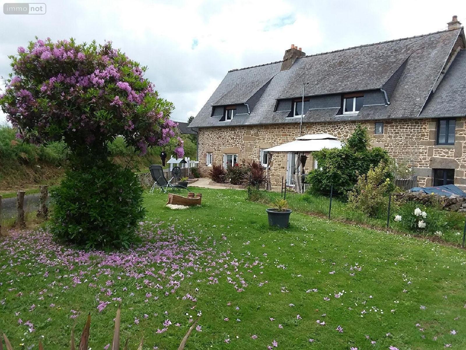 Maison avec jardin et dépendances comprenant au rez-de-chaussée un hall d'entrée, une cuisine aménagée-équipée, une pièce de vie avec cheminée ouverte, une chambre, un bureau, une buanderie, une chaufferie, un WC. A l'étage : trois chambres, une salle de bains, un WC.