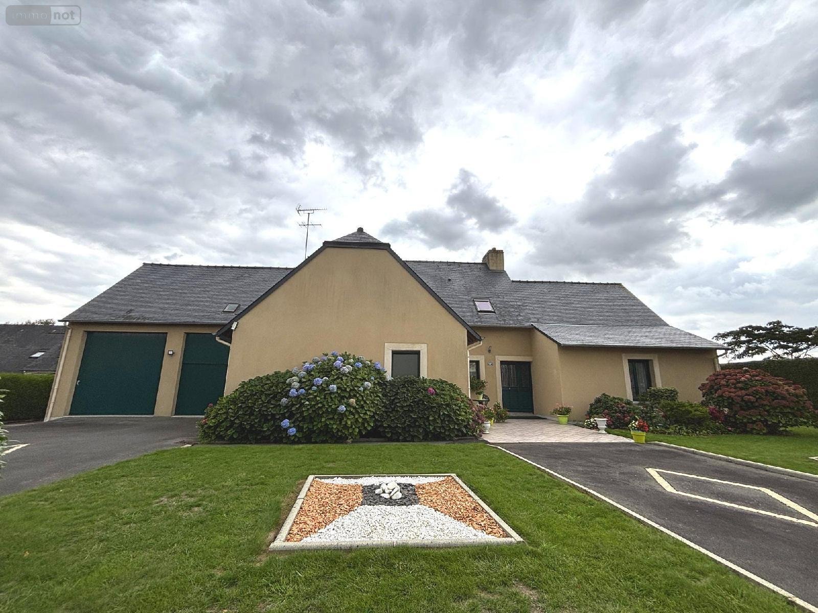 FLEURIGNE A quelques minutes de FOUGERES, Spacieuse maison d'architecte de 2002 offrant 200 m² habitables. Au RDC : entrée, salon-séjour donnant sur la terrasse et le terrain joliment aménagé, cuisine, arrière-cuisine, 2 chambres, salle de bains et wc. ETAGE : 3 grandes chambres, bureau, salle de bains et wc. Menuiseries alu / bois. Pompe à chaleur chauffage au sol rdc et étage, centralisation des volets. Grand garage et un sous-sol de 170 m² avec cave. Extérieurs entretenus, cour goudronnée, potager. Le tout sur 3.228 m² de terrain cloturé.