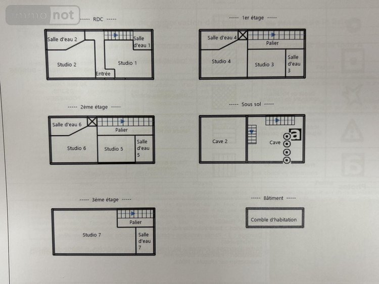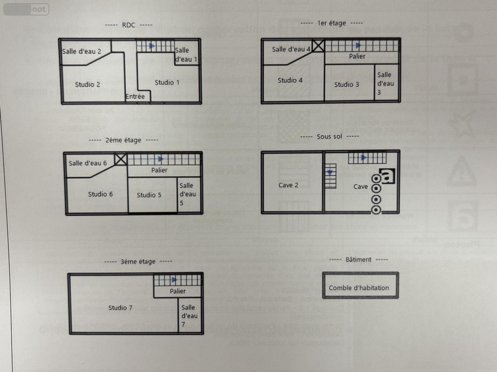 Au 2ème étage : 2 studios loués 260 € CC et 350 € CC.